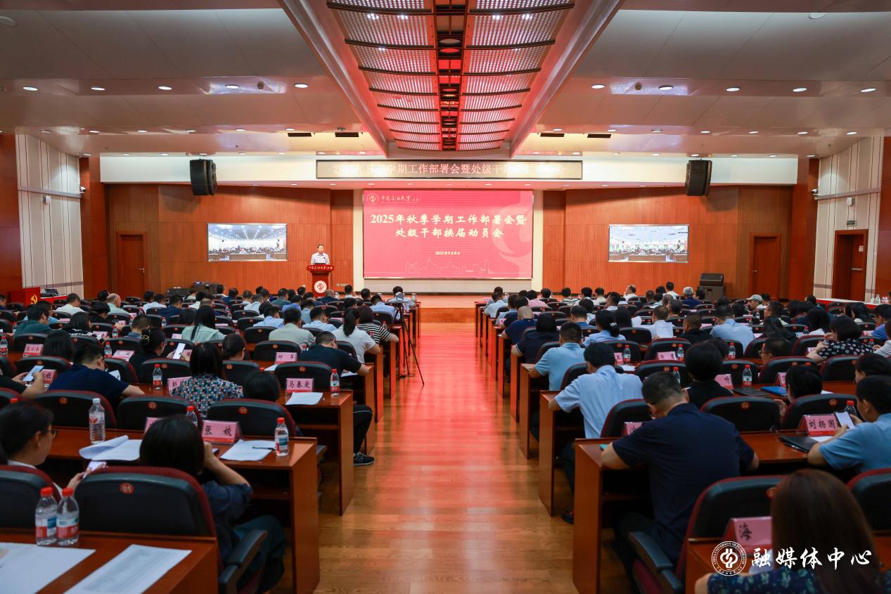 9月8日下午,中石大召开2025年秋季学期工作部署会暨处级干部换届动员会,全体校领导、全体处级干部参加会议。党委书记王同奇主持会议。