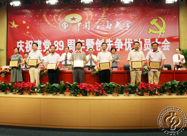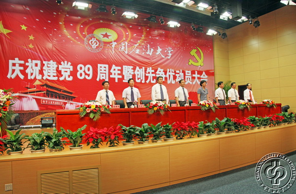 6月29日下午,中国石油大学在研修大厦三楼报告厅隆重举行建党89周年庆祝大会暨创先争优活动动员大会,校领导蒋庆哲、吴小林、刚文哲、雷玉江、陈大恩、徐春明、庞雄奇,副校级干部、组织部部长鲍志东出席大会并在主席台就坐。大会由党委副书记吴小林主持。