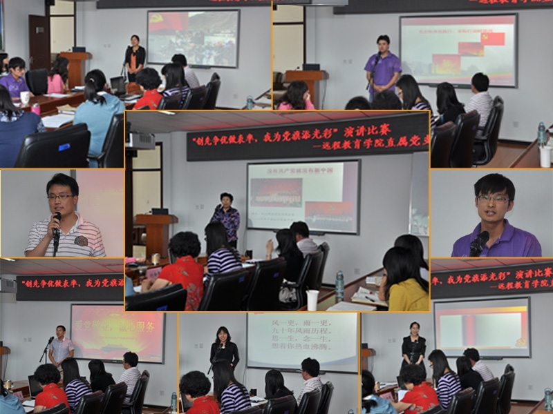 根据创先争优活动和庆祝建党九十周年主题实践活动计划,远程教育学院党支部、工会于5月19日下午,联合举办了“创先争优做表率,我为党旗添光彩”演讲比赛。