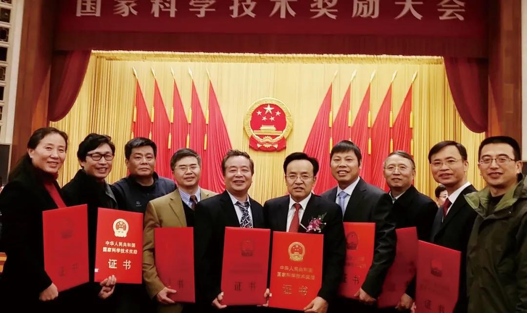 张来斌教授带领的科研团队获得国家技术发明奖,图为在人民大会堂与其他获奖人合影