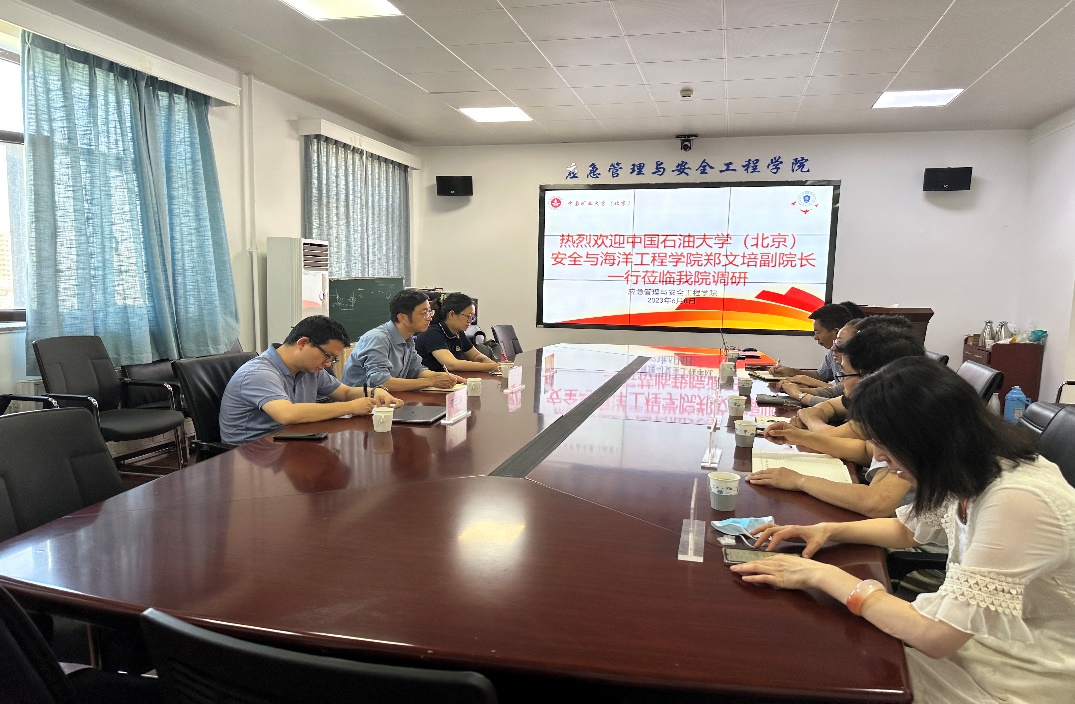 6月8日,中国石油大学(北京)安全与海洋工程学院副院长郑文培带队赴中国矿业大学(北京)应急管理与安全工程学院(以下简称“矿大安全学院”)开展专业建设与培养方案调研与交流。安全工程专业负责人胡瑾秋,安全工程系主任李云涛参与调研。