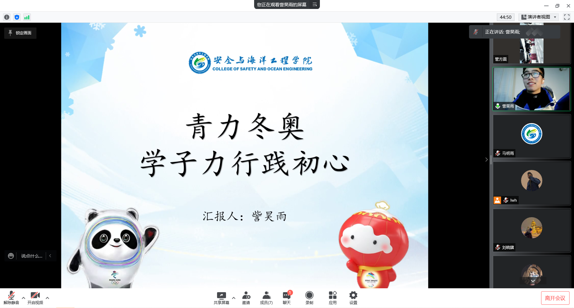安全与海洋工程学院将继续围绕“讲好冬奥故事,献礼建团百年”为主题,以冬奥精神为指引,联结学院、学校党团支部,开展系列宣讲活动,为建团百年献礼。