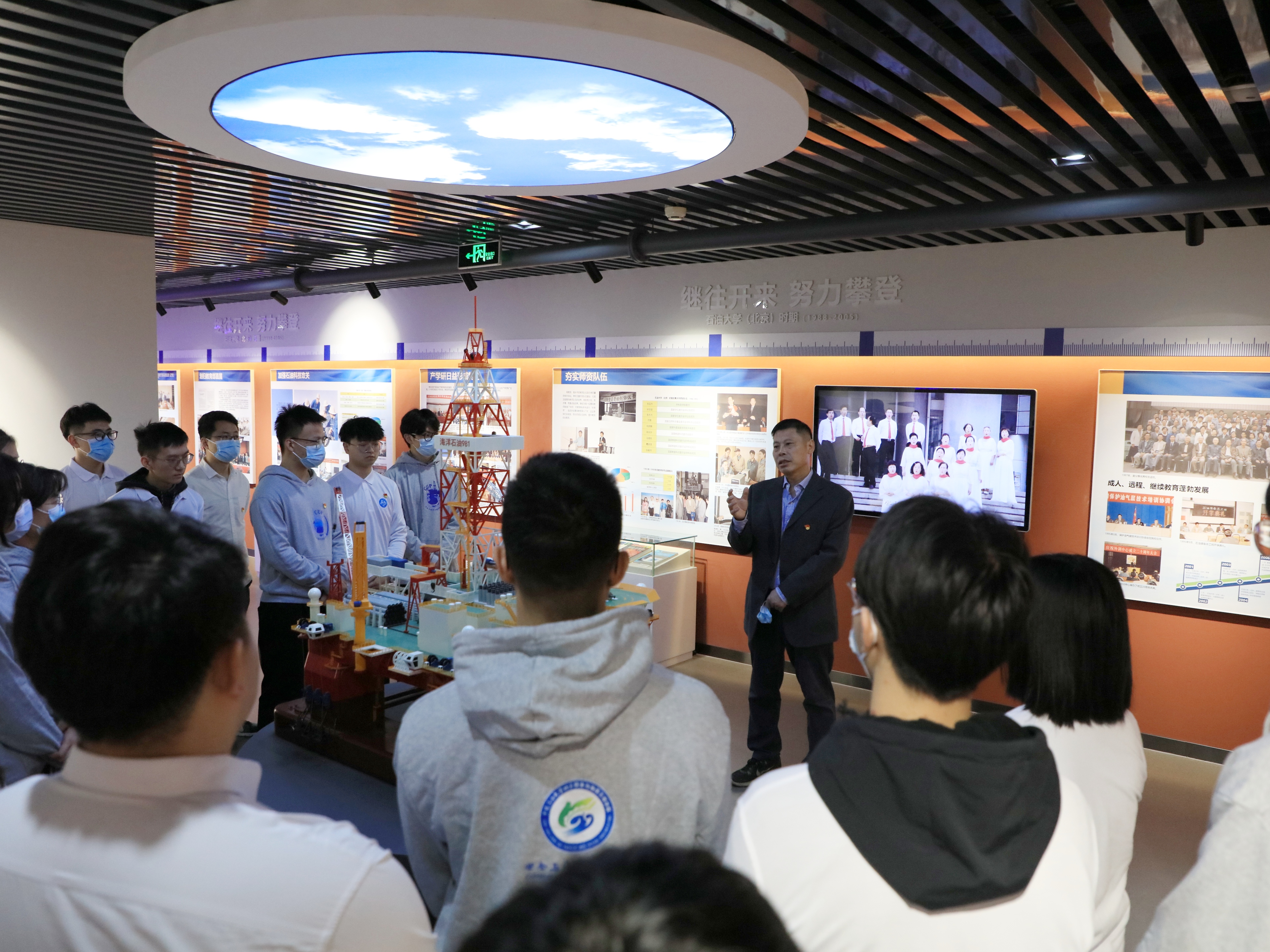 “上世纪六十年代以前,我国没有进行过海上油气的勘探。新中国成立后,海洋石油事业于南海发端。早期我们只能在300米水深以内开采石油,再深一点就要用到国外的技术和国外的设备…”。深海工程团队教工党支部书记杨进在校史展览馆981平台模型前为同学们讲述了中国海洋石油发展历程,为学生党员上了一堂生动的、有温度的石油发展历史课,他讲述了海洋石油工人艰苦创业、求实创新的奋斗史,讲述了中石大师生在海洋石油发展过程中的重大贡献。“现在981平台会议室上还悬挂着中国石油大学(北京)实践基地的牌子。”听到这,深海工程团队2019级研究生于辰当即表态:我毕业后也要到南海工作,把海洋石油发展当作毕生事业,将青春留在祖国蓝色国土上!