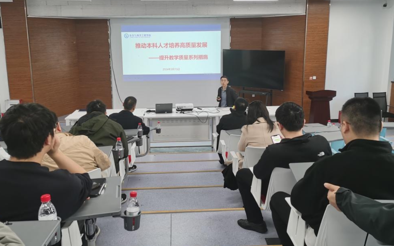 3月15日上午,安全与海洋工程学院在安全科技楼召开全体教职工大会,学院领导班子及全体教职工参会,特邀张来斌院士出席。本次会议部署了2024年度学院工作重点,并对研究生培养与指标分配等相关工作细则进行详细解读,全体与会教师对师德教育进行集中学习,观看违规案例警示与分析,加强学院师德师风建设。会议由学院党委书记孙为主持。