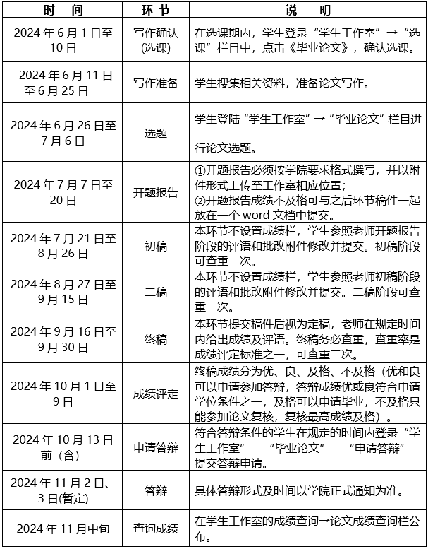 2.2024年春季学期已进行论文选题且未完成写作的同学,请在2024秋季论文写作期继续完成写作。