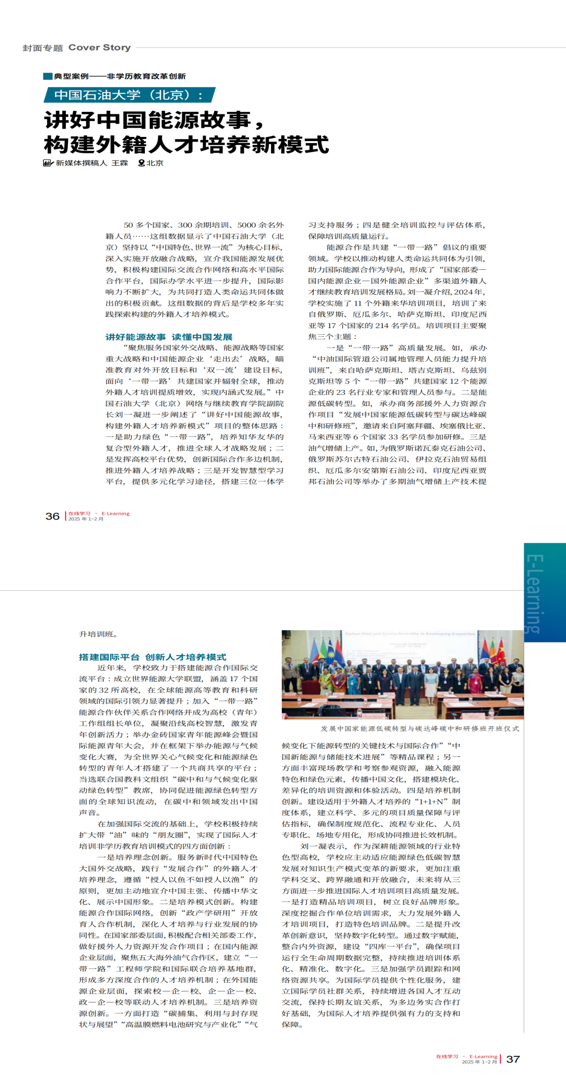 近日,《在线学习》期刊专题报道我院外籍人才培养办学成果,以《中国石油大学(北京): 讲好中国能源故事,构建外籍人才培养新模式》为题,深度解码我院如何用培训讲好中国能源故事。