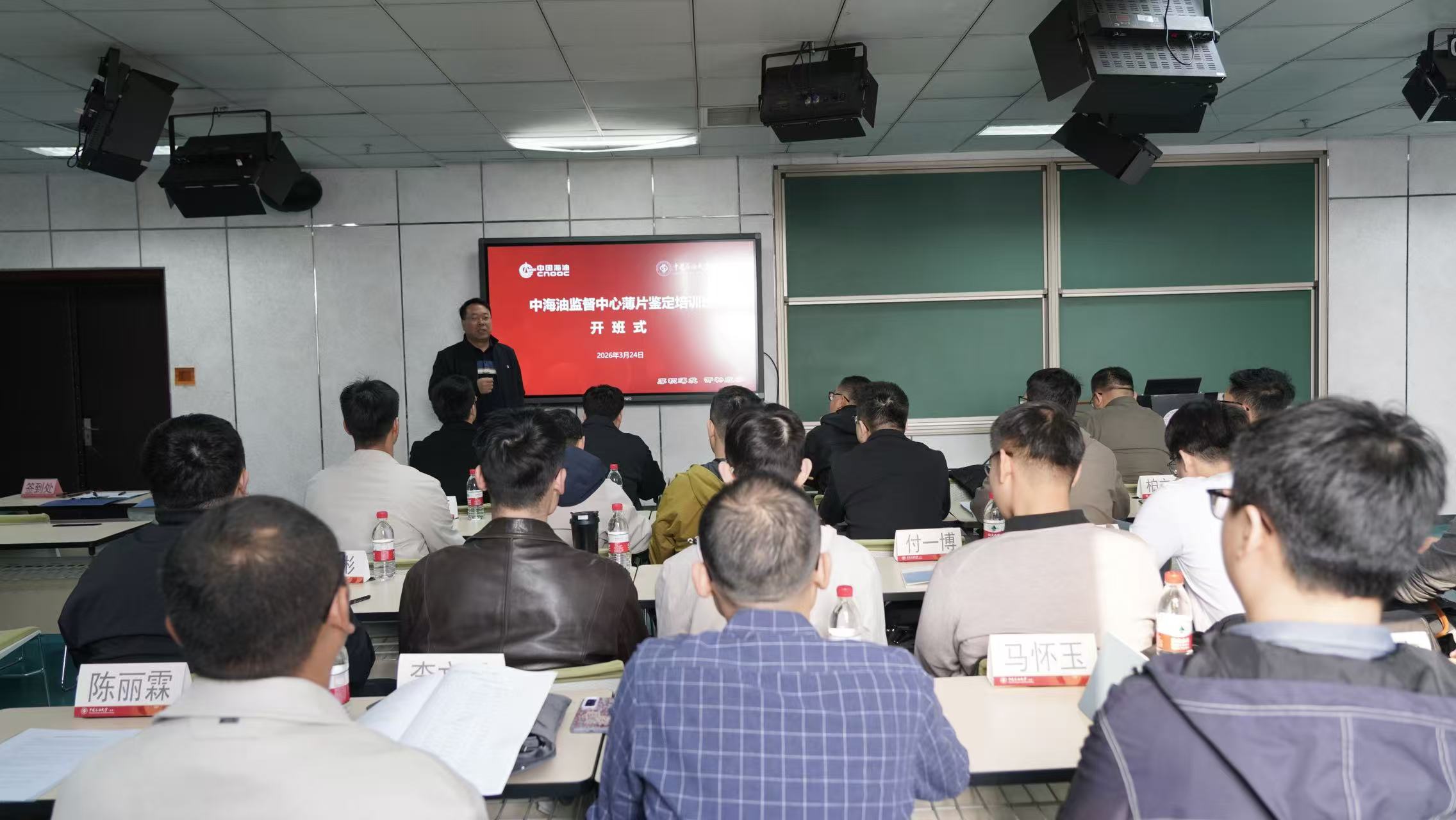 2026年3月24日,中海油监督中心薄片鉴定培训班在我校正式开班。本次培训为期3天,共有26名来自中海油监督中心各个技术岗位的地质、测井、钻井领域监督及工程技术人员参训,旨在夯实专业人员岩石学基础,提升岩石综合识别与判读能力,为油气田勘探开发工作注入专业技术力量。