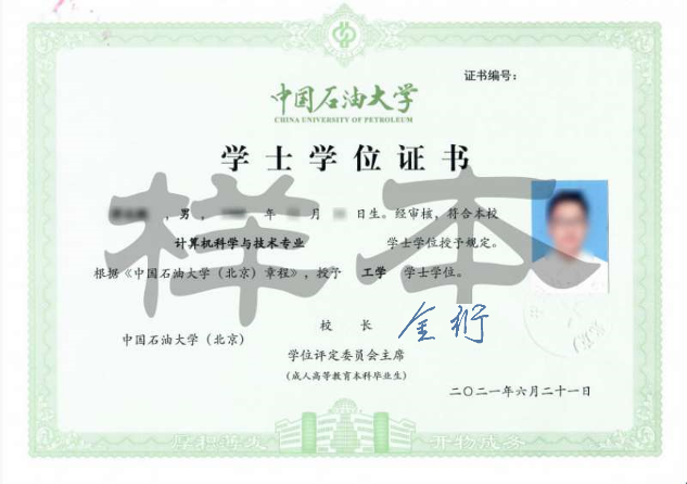 学生在规定学习年限内修满教学计划规定的学分,达到毕业要求的,由学校颁发国家承认的中国石油大学(北京)成人高等教育毕业证书,并在教育部学信网电子注册;符合学校学位授予条件的,可申请获得学士学位。