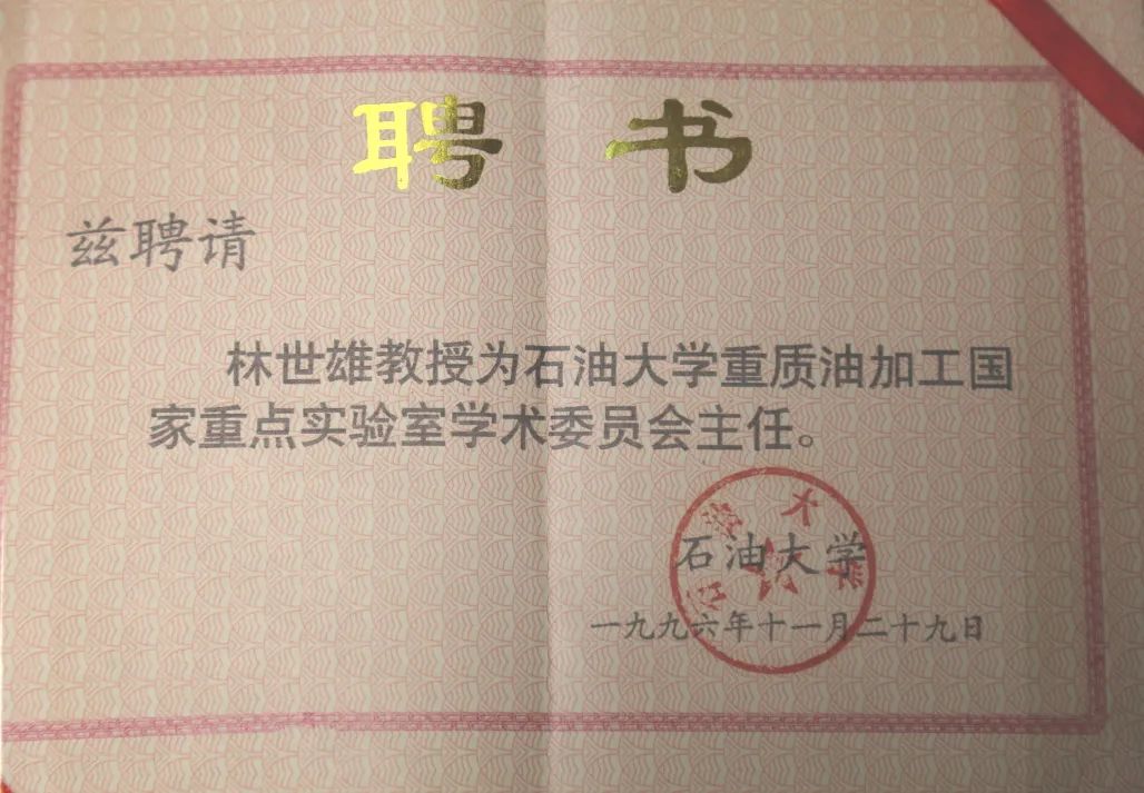 中国石油大学(北京)“创校功勋奖”获得者林世雄教授,一生潜心学术,造诣精深,长期担任教研室主任、系主任,教学孜孜不倦,育人春风化雨,主编的《石油炼制工程》荣获“全国高校优秀教材奖”,是著名的石油教育家;他尊重科学,崇尚实践,潜心学术,参与的“大庆常压渣油催化裂化技术开发”科研项目获国家科技进步一等奖,参与筹建重质油加工国家实验室建设并担任首届实验室主任,是著名的重质油加工专家。
