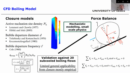 Dr. Marco Colombo is a Senior Research Fellow in the School of Chemical and Process Engineering at the University of Leeds. He obtained his PhD from the Polytechnic University of Milan in 2013, with a thesis focused on the thermo fluid dynamics of helical coil steam generators. He joined the University of Leeds in 2013 and has worked on numerous funded projects focused on computational modelling of boiling and natural convection and application to nuclear reactor thermal hydraulics. In 2019, he was awarded the Engineering and Physical Science Research Council (EPSRC) Fellowship “Towards comprehensive multiphase flow modelling for nuclear reactor thermal hydraulics”. His main research interests are in the modelling of multiphase gas-liquid flows, boiling heat transfer, natural convection, turbulent fluid flows and nuclear thermal hydraulics at different levels of complexity and scale resolution. He is Principal and Co-Investigator in multiple EPSRC-funded grants and has published more than 50 peer-reviewed publications in journals, international conferences and books.
