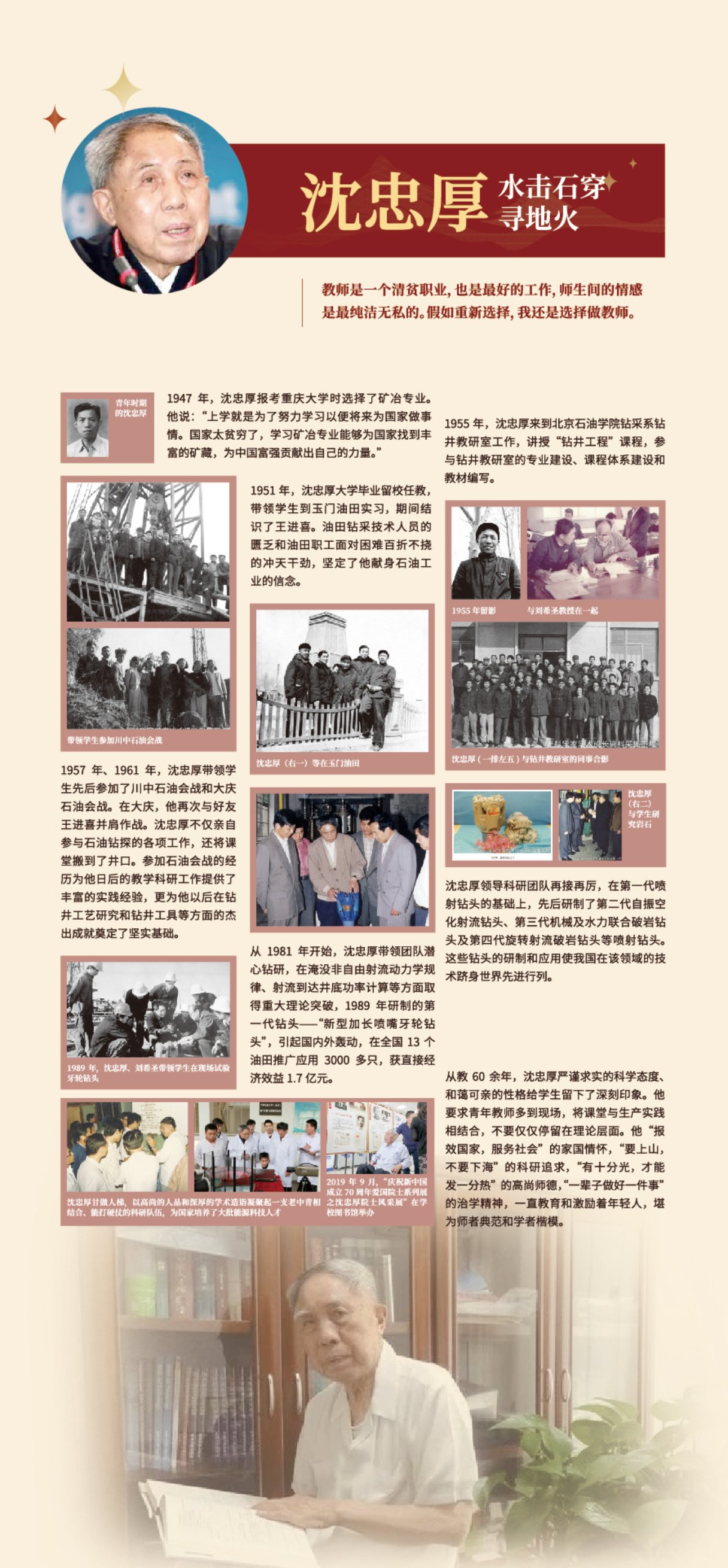 1951年毕业于重庆大学矿冶系,1955年进入北京石油学院钻井教研室工作,曾任石油大学石油工程系主任、研究所所长、石油工程系射流研究中心主任。