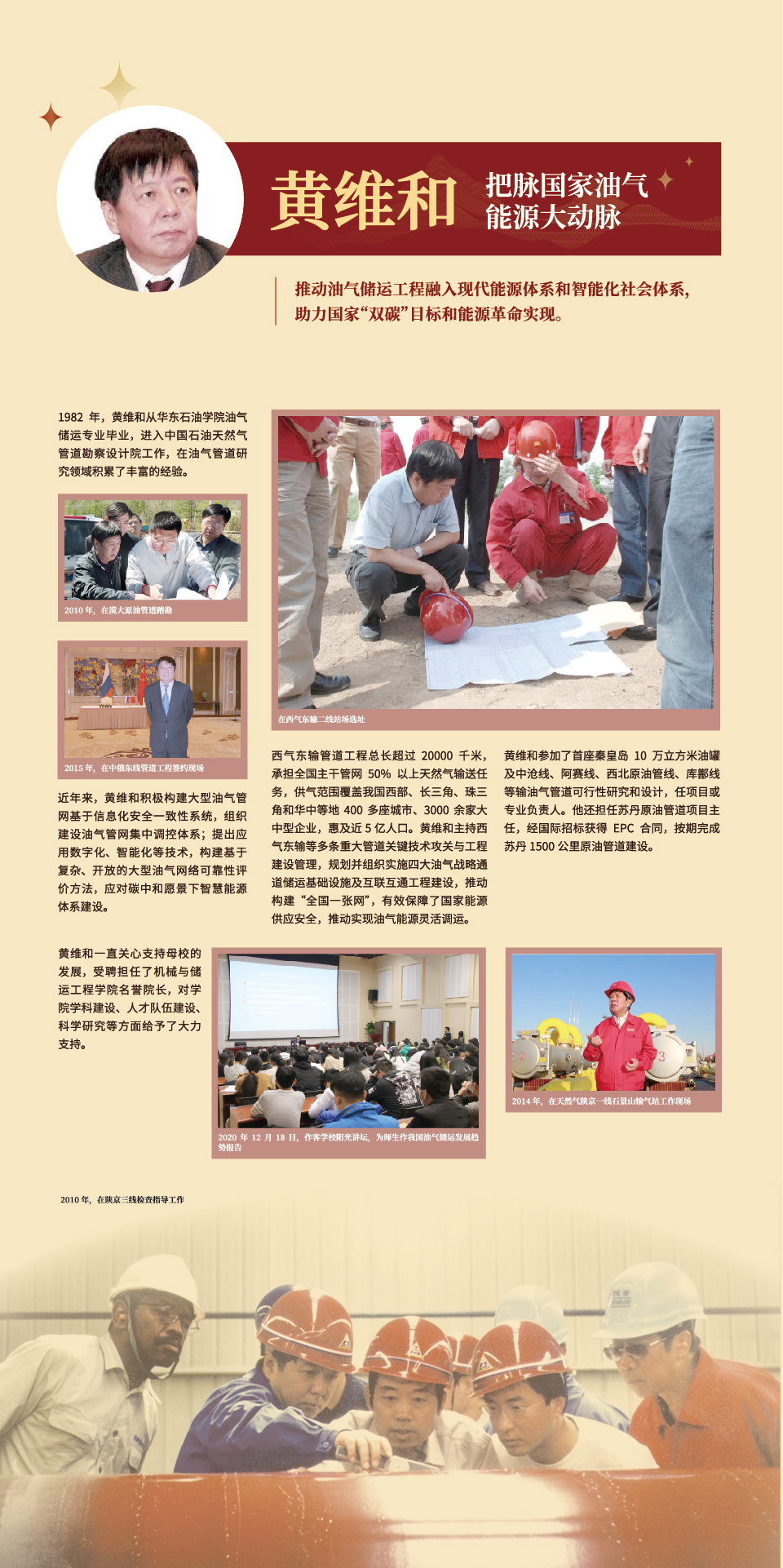 主持西气东输等多条重大管道关键技术攻关与工程建设管理,规划并组织实施四大油气战略通道储运基础设施及互联互通工程建设。构建工程协同创新模式,致力于易凝高黏原油管道输送及大口径、高压力、高强钢天然气管道输送等难题研究;构建大型油气管网基于信息化安全一致性系统,组织建设油气管网集中调控体系;构建基于复杂、开放的大型油气网络可靠性评价方法,应对碳中和愿景下智慧能源体系建设。