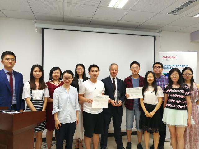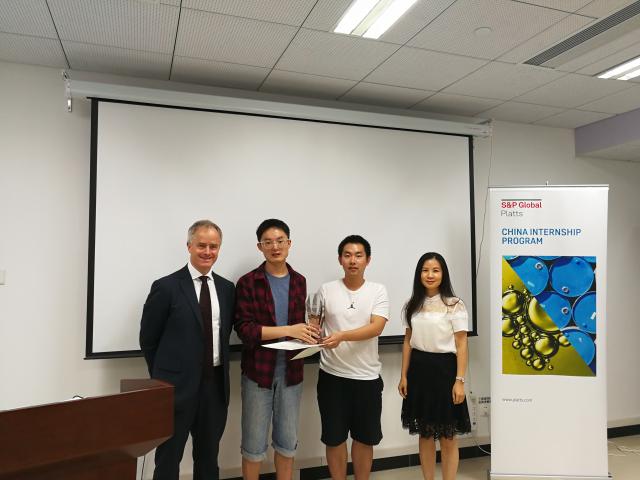 7月3日,2018年第十一届S&P Global Platts 实习生大赛(S&P Global Platts Internship Program)在主楼B座1318圆满落幕,S&P Global Platts 大中华区内容总监Sebastian Lewis、高级分析师Cindy Liang、高级分析师王祝伟、中国能源战略研究院能源经济与金融国际教育中心副主任王晓光及研究院师生出席了颁奖典礼。