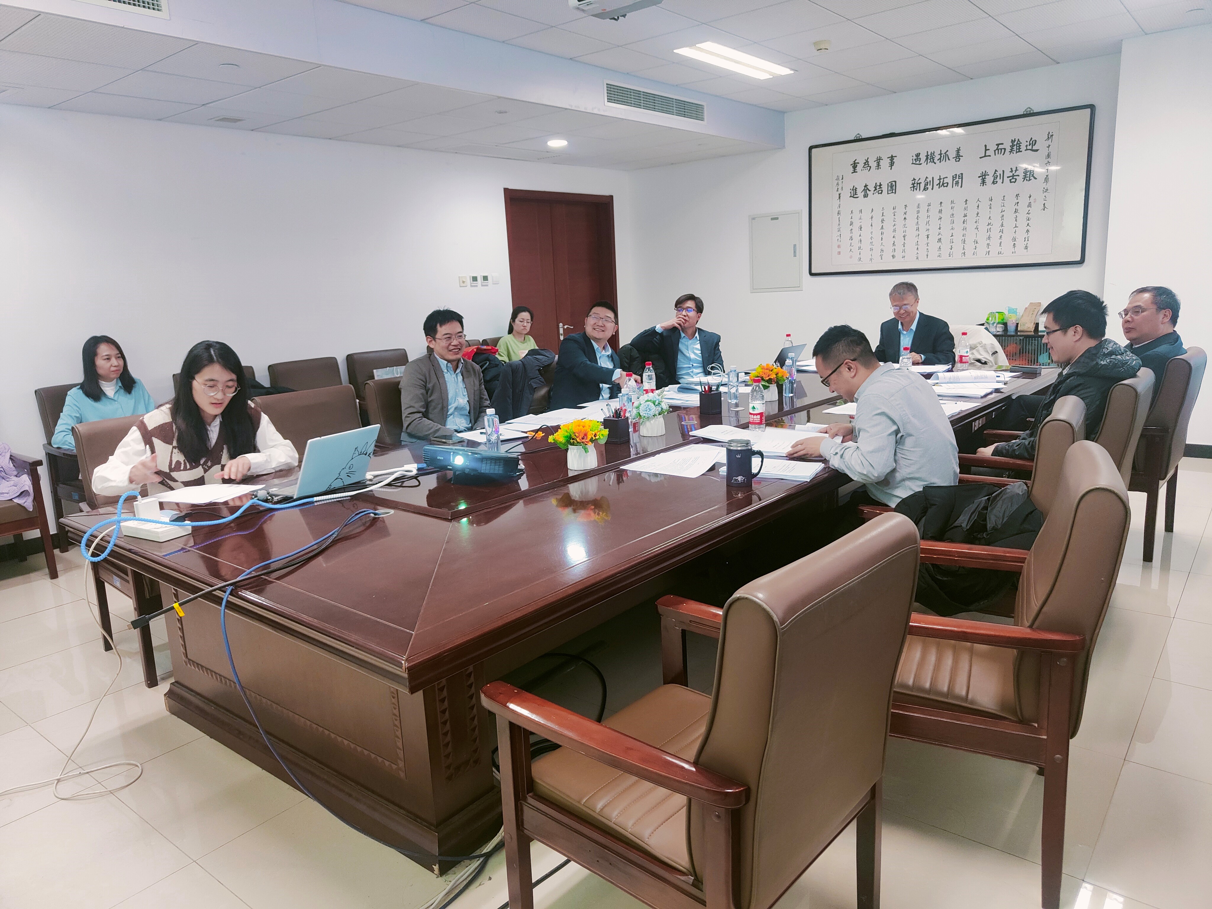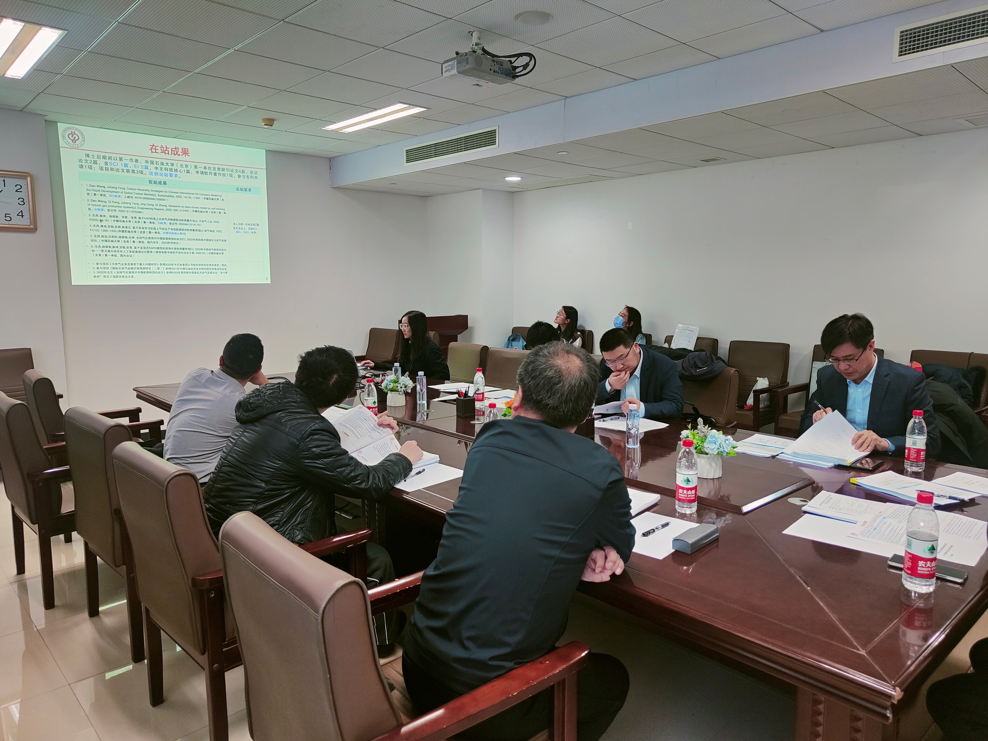评委专家组由中科院数学系统所副所长,国家杰青杨晓光教授担任组长,中石油经研院石油市场所戴家权所长,中国石油大学(北京)唐旭教授,王建良教授,张奇教授和潘勋章副教授担任评审专家,刘明明副教授担任答辩秘书。