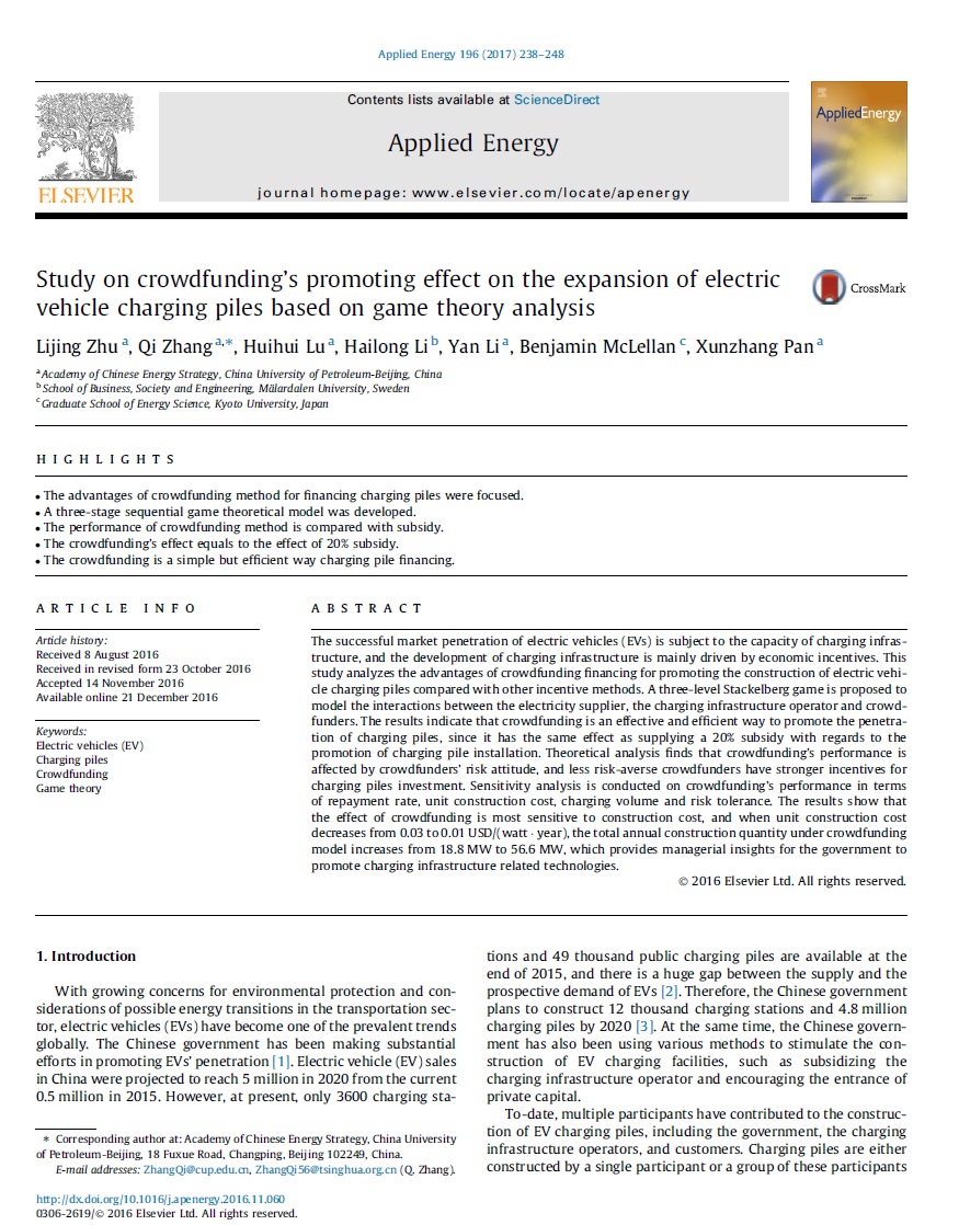 Study on crowdfunding’s promoting effect on the expansion of electric vehicle charging piles based on game theory analysis
