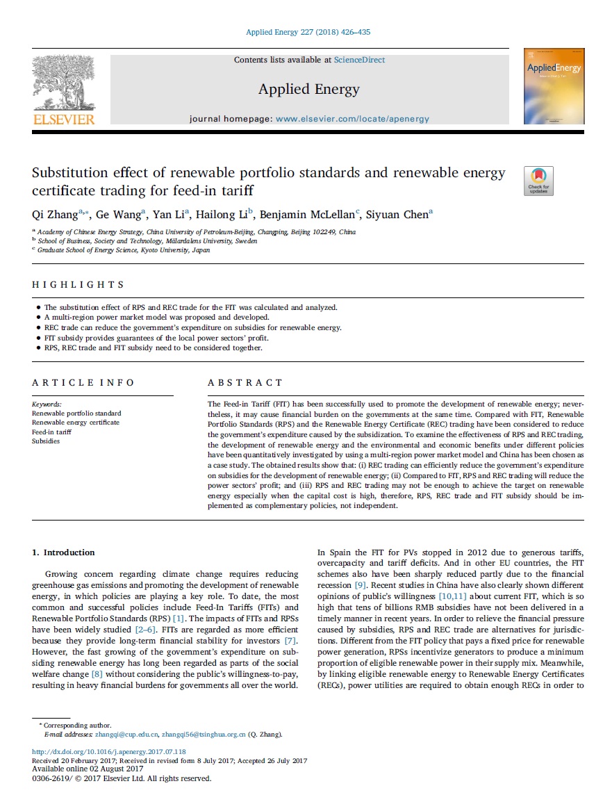 Substitution effect of renewable portfolio standards and renewable energy certificate trading for feed-in tariff