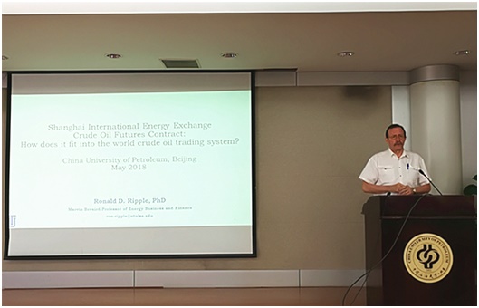 最后,Ripple教授以“上海国际能源交易所原油期货合约如何融入世界原油交易体系”为主题 ,深入介绍了上海原油期货合约,并与世界其他主要原油期货合约做了对比。Ripple教授认为上海原油期货与迪拜原油期货具有一定的竞争关系。随后,Ripple教授分析了中国开展原油期货交易的意义,以及人们对于原油期货交易的认识误区,通过已有数据的实证研究,得出纽约商业交易所(NYMEX)和伦敦洲际交易所(ICE)的原油期货价格对上海原油期货价格有引领作用等结论。演讲结束后,Ripple教授同与会师生就国际原油市场形势等问题进行了讨论。