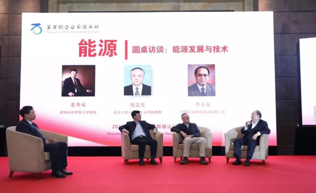 能源组圆桌访谈环节,对外经济贸易大学“一带一路”能源贸易与发展研究中心主任董秀成,北京长城企业战略研究所副所长刘志光,国石油技术服务联盟主席李丕龙分别就国家能源改革现状与能源现状、长城智库的建立和发展历程、美国页岩油气产业的发展分享心得。