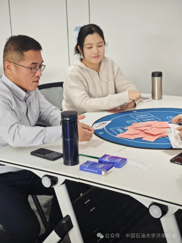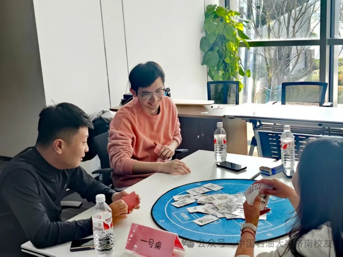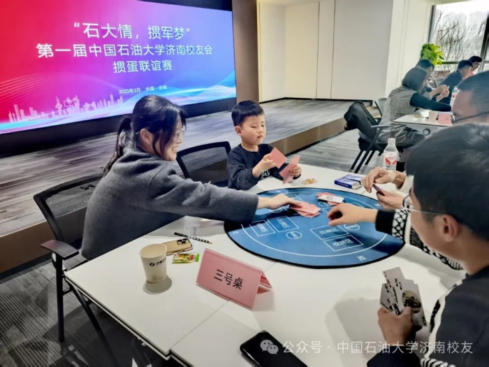 春水初生,燕语呢喃。2025年3月9日下午,“石大情,掼军梦”第一届中国石油大学济南校友会掼蛋联谊赛在济高校友会客厅鸣锣开战。这场酝酿已久的智慧盛宴,2024年初便埋下伏笔:校友棋牌交流群星火燎原;2025年新春更见匠心:以校友钢笔画作品为图案的定制牌具惊艳亮相,将石油人的艺术情怀镌刻于方寸之间。
