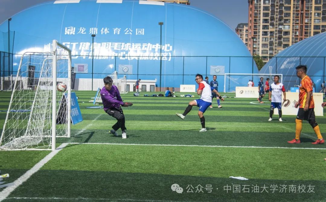 10 月 13 日上周日,全国高校校友山东足球锦标赛赛小组赛最后一场第三轮比赛中,中国石油大学济南校友会足球队以2比0战胜曲阜师范大学济南校友队。这支今年7月开始筹建、9 月刚成立的队伍,首次参赛的队伍,不折不扣的“新军”,以三战两胜一负积6分的成绩,位列小组第二,成功晋级十六强。