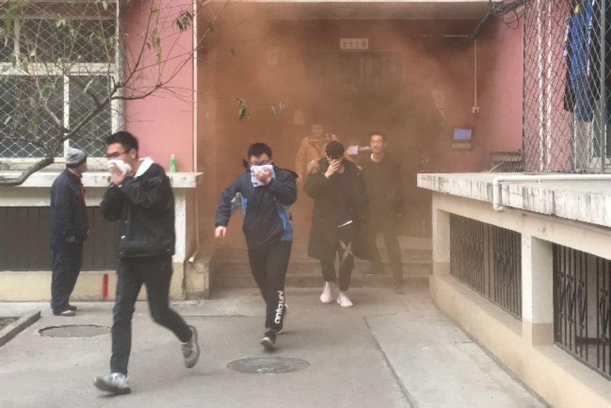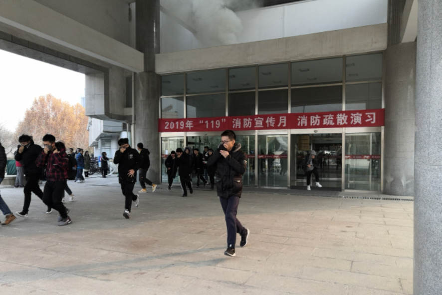 实战演练,优化完善应急准备。按照贴近实战、注重实效的原则,学校组织了两场消防疏散演练。11月9日,保卫处联合学生工作处、润杰物业在润杰学生公寓举行消防疏散演练;11月21日,保卫处、图书馆、校医院联合昌平消防救援支队永安中队在图书馆举行消防疏散演练。演练均按照应急预案,模拟火灾报警、紧急疏散、扑救火灾、营救被困人员等各环节处置流程,现场紧张有序,达到预期目的。通过演练,密切了相关部门联动处置火灾的流程,进一步优化完善了应急准备。