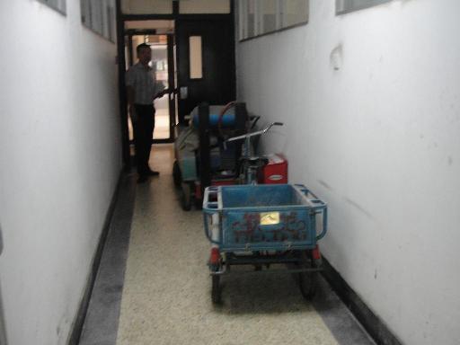 将实验设备、三轮车长期放置在岩石力学研究室里侧占用走廊通道。