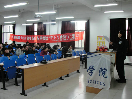 11月26日,应我校地球科学学院团支部邀请,松园派出所石油大学辖区民警颜世东警官来我校进行安全教育知识讲座,地球科学学院08级地质工程专业近150名同学到场听取了讲座。