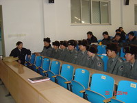 会议上,贾科长给保安队员们详细地讲解了我校校卫队规章制度,包括《保安人员十必须》、《保安人员守则》、保安员消防职责等共十个方面的内容。旨在提高我校保安队伍的综合素质,完善队伍制度建设,加强队伍的制度化管理。随后,张老师和戴老师又分别就消防职责和南校园的治安状况做了简明讲解。