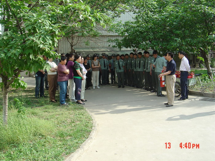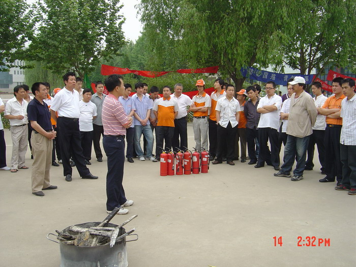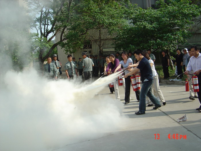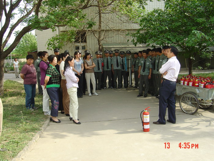 2009年5月13日和14日下午,我处分别对图书馆和餐厅员工进行新《消防法》的教育和灭火演练。图书馆和餐厅相关员工参加了培训。