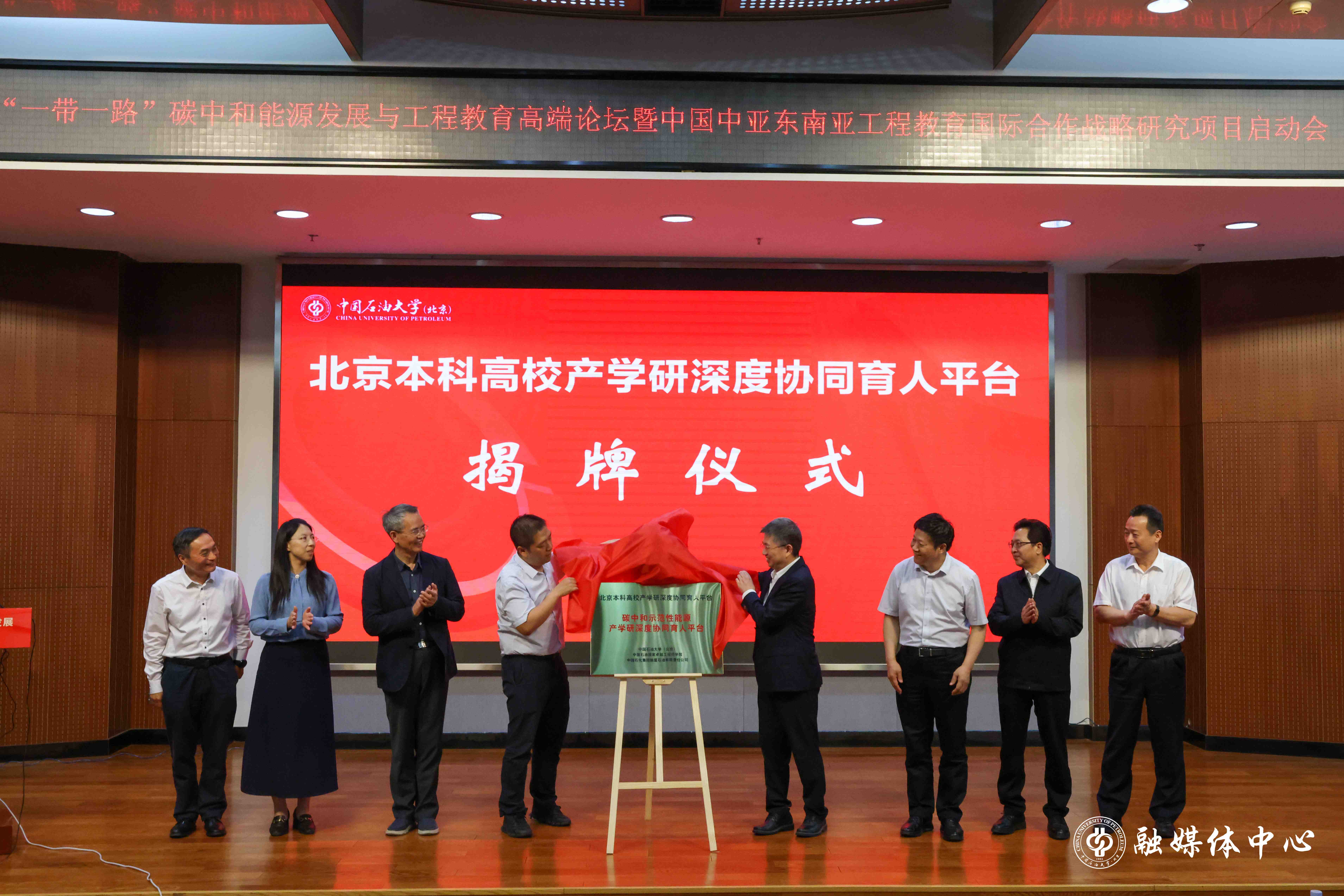 金衍和刘霄为北京本科高校产学研深度协同育人平台——“碳中和示范性能源产学研协同育人平台”揭牌。该平台由中石大牵头,联合中国石油国家卓越工程师学院、中国石化集团新星公司,以服务国家“双碳”战略、保障国家能源安全为目标,聚焦油气与新能源多能协同、净零排放,整合校企优质资源,共建人才培养体系、共育拔尖创新人才、共管培养全过程、共创碳中和教学资源、共享人才培养和科技创新成果,助力能源行业绿色低碳转型。