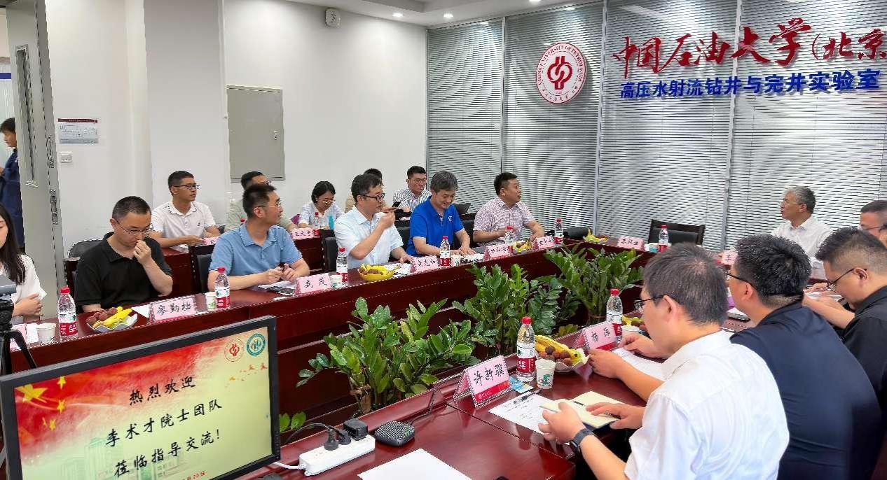 2023年7月20日,中国工程院院士、山东大学校长、党委副书记李术才教授率领其研究团队代表教师,来到中国石油大学(北京)高压水射流钻井与完井实验室,与实验室老师和同学们开展了水射流-机械联合掘进破岩机理与技术、新型非接触式破岩方法等研究方向的交流讨论。中国工程院院士、高压水射流钻井与完井创新团队负责人李根生院士,中国石油大学(北京)副校长金衍教授,中国石油大学(北京)石油工程学院、碳中和示范性能源学院院长宋先知教授对李术才院士及其团队老师的到访表示热烈欢迎。高压水射流团队带头人、国家杰出青年基金获得者、油气井工程系主任黄中伟教授主持了此次会议并向李术才院士介绍高压水射流钻井与完井实验室团队近况。