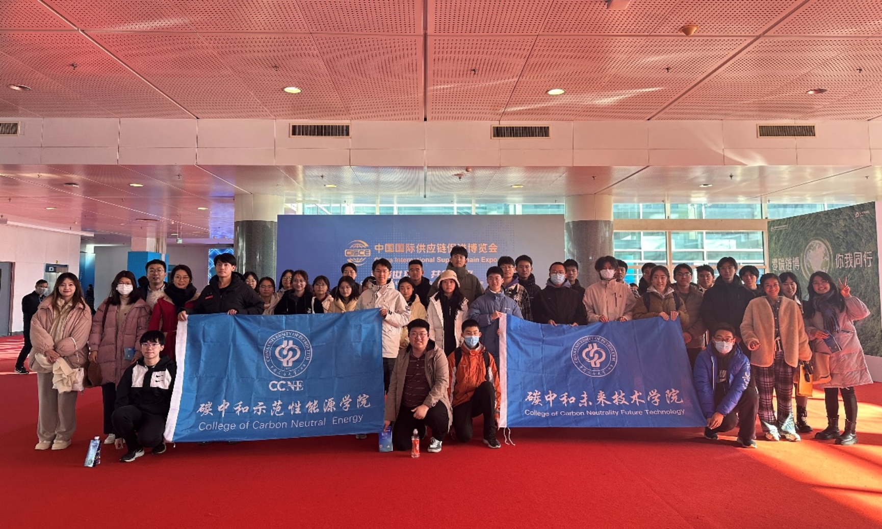 在全球持续推进绿色发展与碳中和的背景下,中国国际供应链促进博览会(CISCE)迎来了一批特别的参展者——碳中和能源创新班的学生。12月1日下午,来自碳中和示范性能源学院首届创新班的学生赴链博会进行体验与参观。