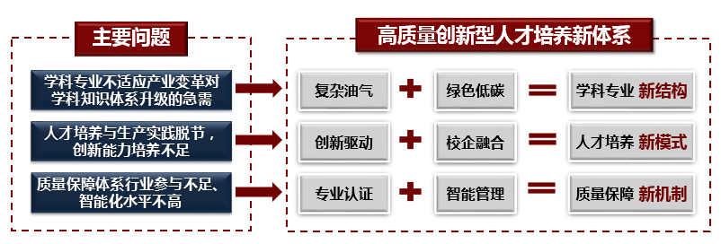 中国石油大学(北京)始终以服务国家能源战略为己任,立足能源发展趋势,充分发挥学校与行业企业联系紧密的优势,推动企业深度参与人才培养,承担多项国家级工程人才培养改革试点项目,积极探索高层次工程人才培养规律。经过十余年的研究与探索,学校逐步构建了“新结构+新模式+新机制”高质量创新型工程人才培养新体系。