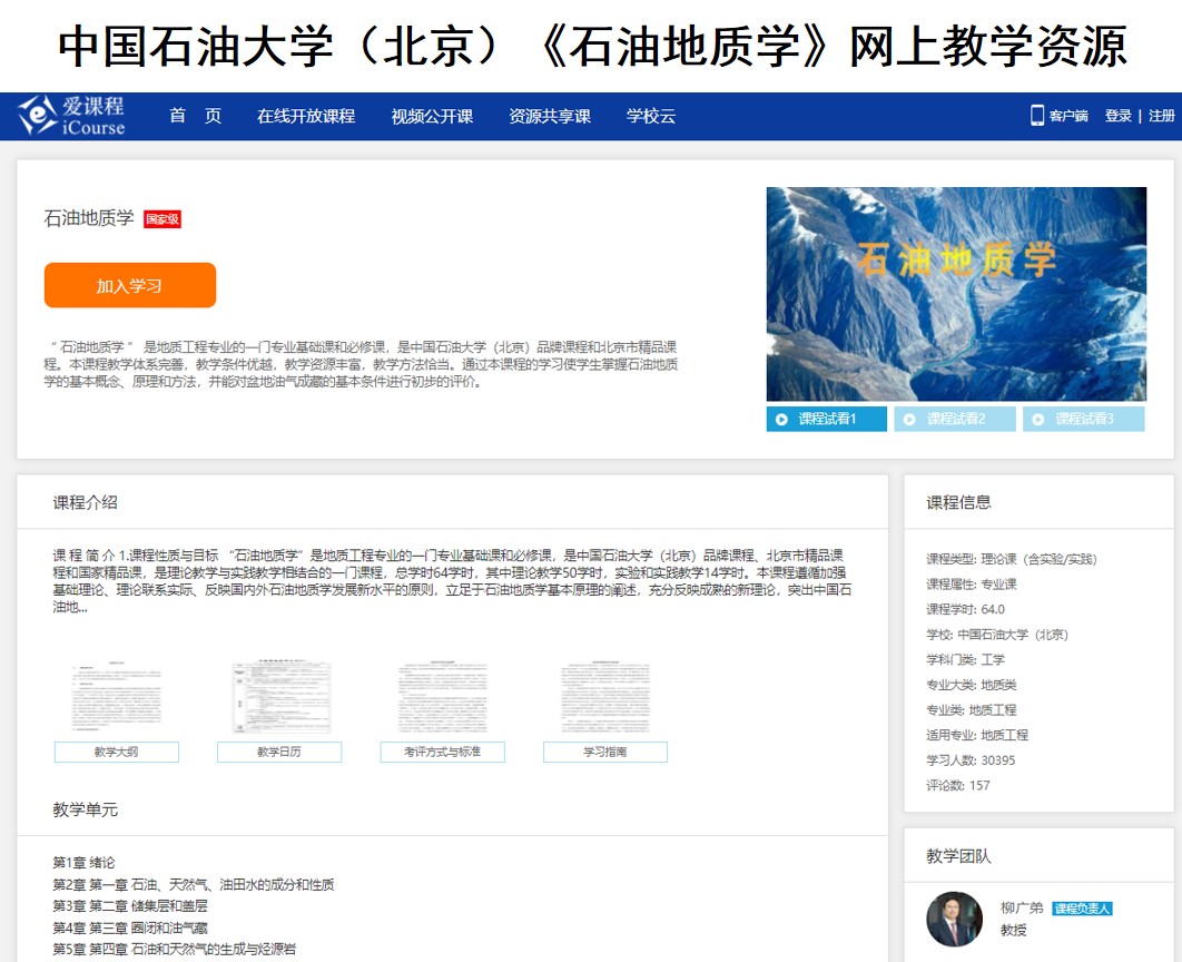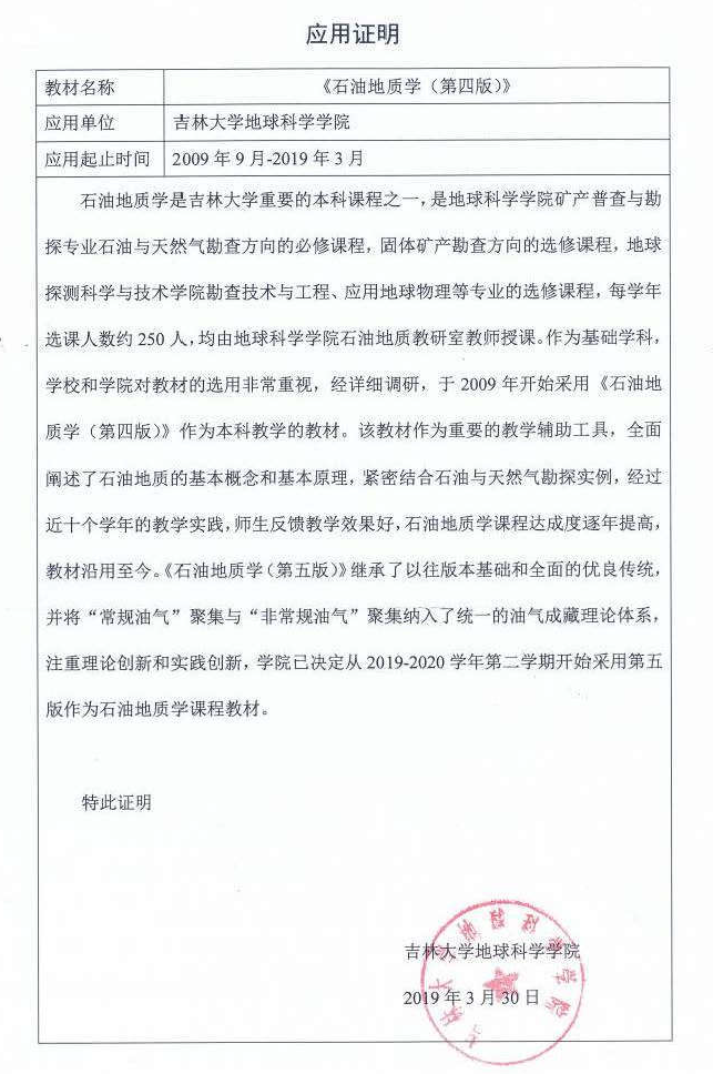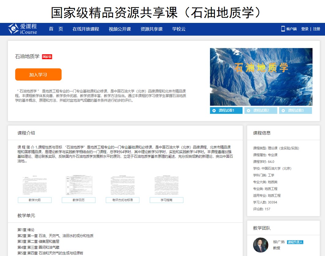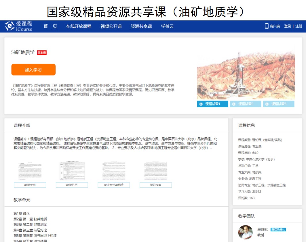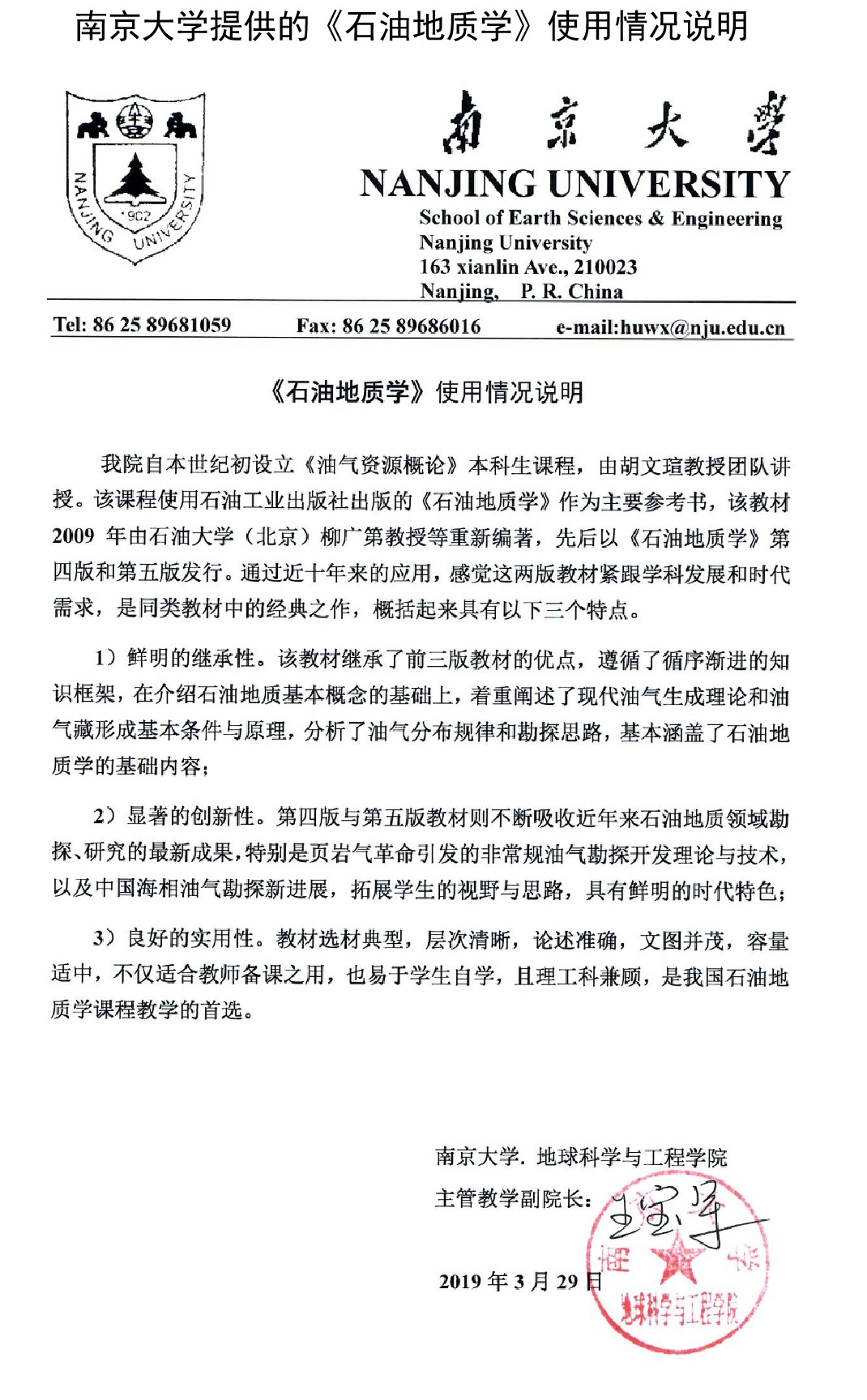 • 主编出版了4部国家级规划教材,《石油地质基础》教材被评为首届全国优秀教材二等奖。建设了2门国家级一流本科课程和4门国家级精品资源共享课程,建成了国家级实验教学示范中心、国家级工程实践教育中心和国家级校外人才培养基地,并首创了全国油气地质大赛且已成为我国石油行业最有影响力的赛事之一。
