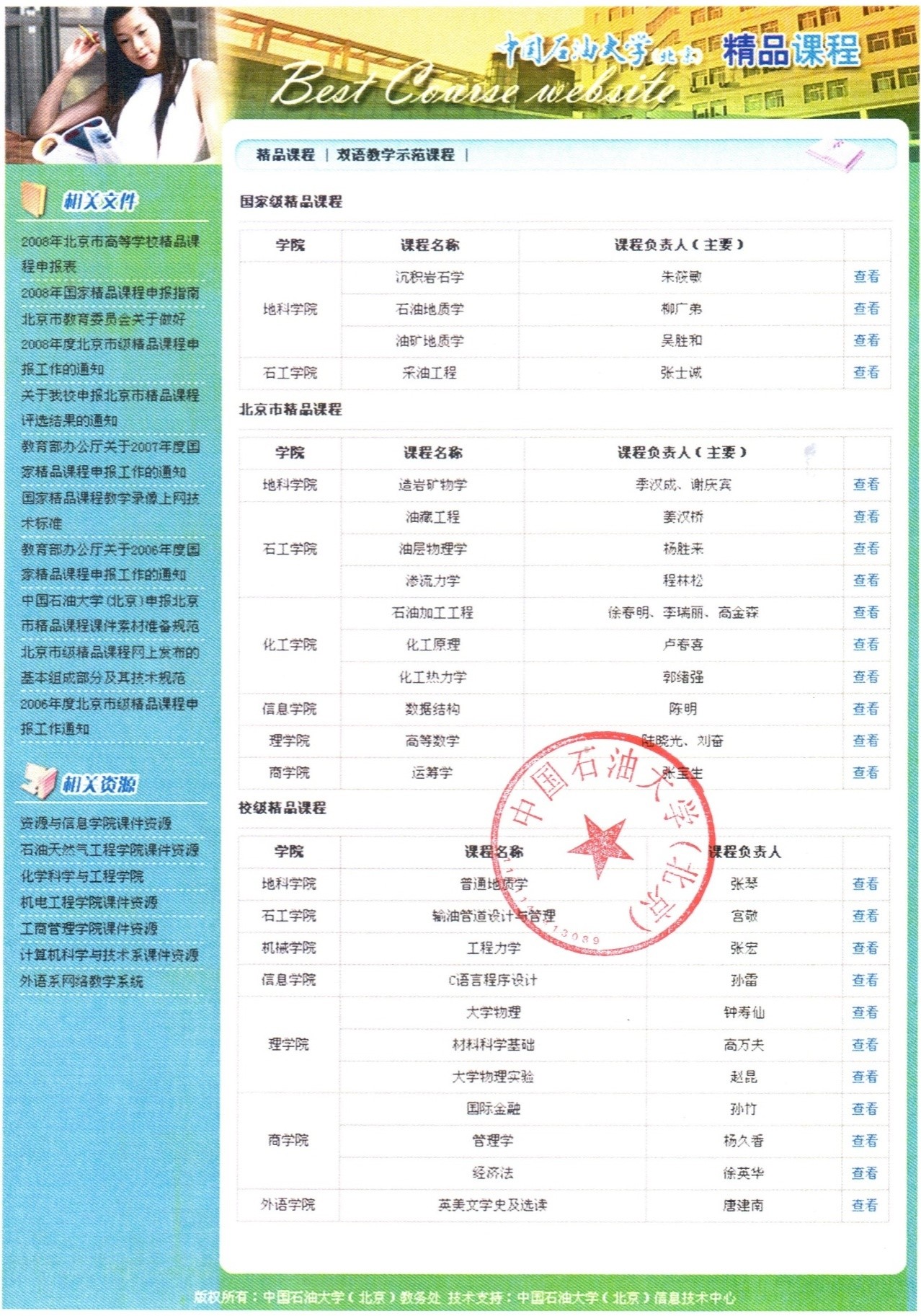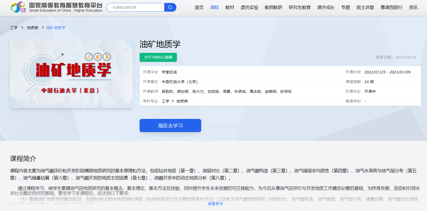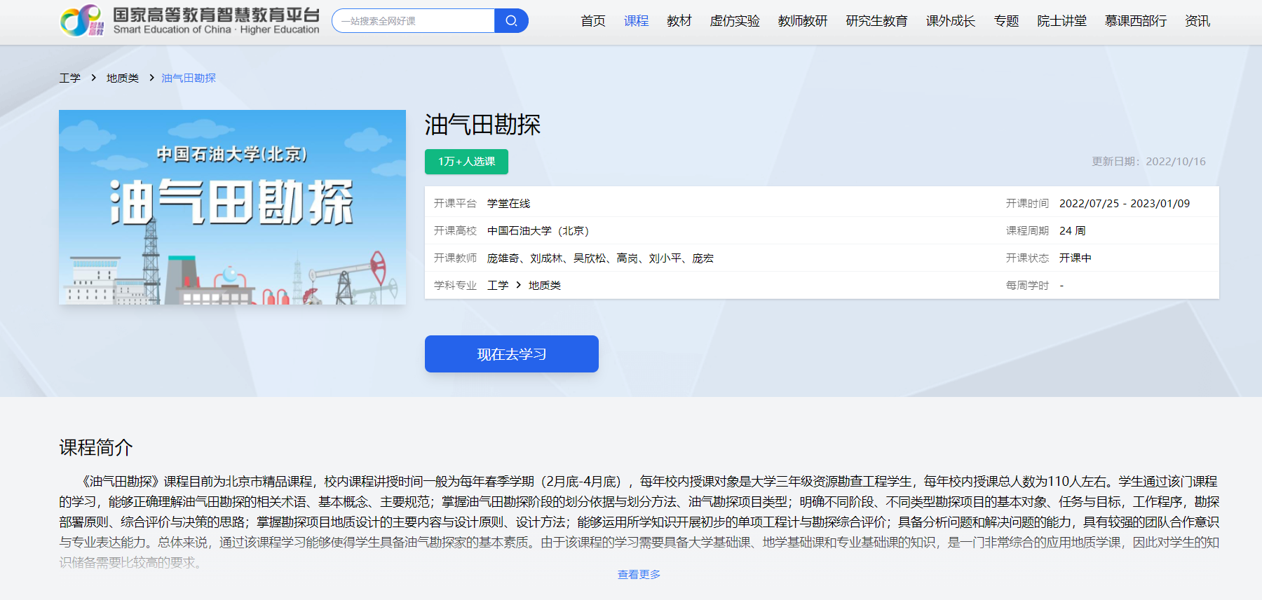 • 主编出版了4部国家级规划教材,《石油地质基础》教材被评为首届全国优秀教材二等奖。建设了2门国家级一流本科课程和4门国家级精品资源共享课程,建成了国家级实验教学示范中心、国家级工程实践教育中心和国家级校外人才培养基地,并首创了全国油气地质大赛且已成为我国石油行业最有影响力的赛事之一。