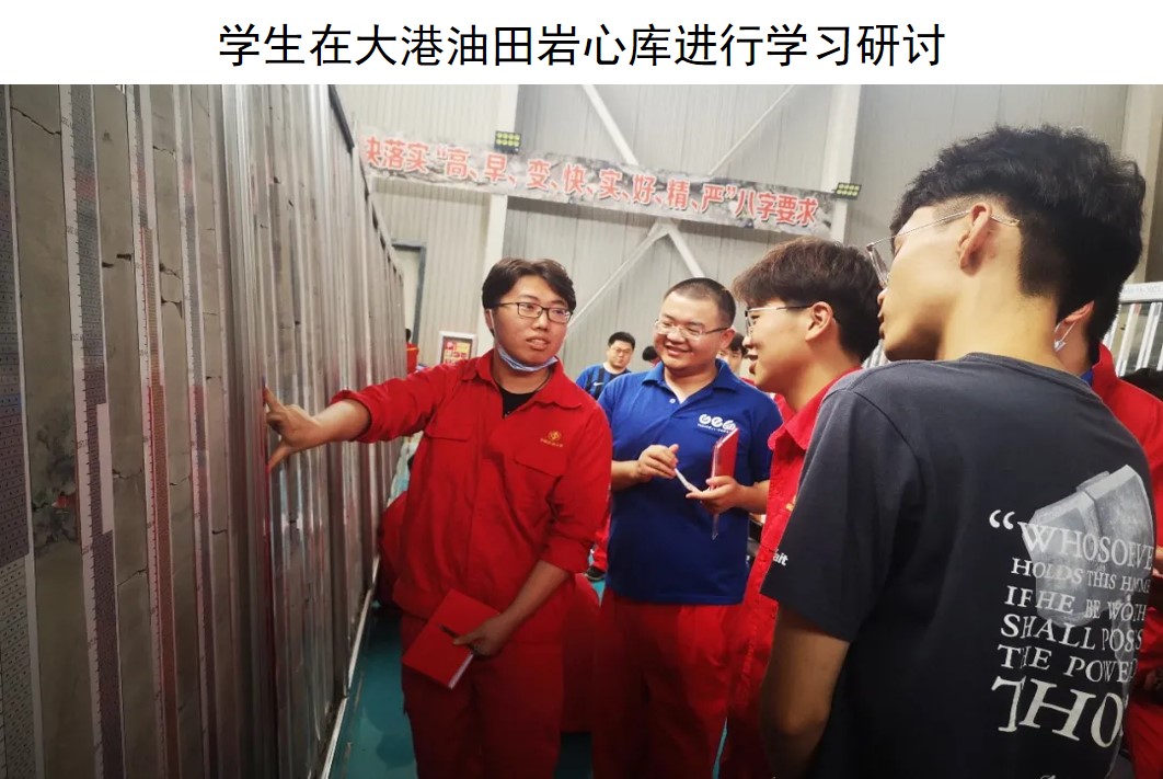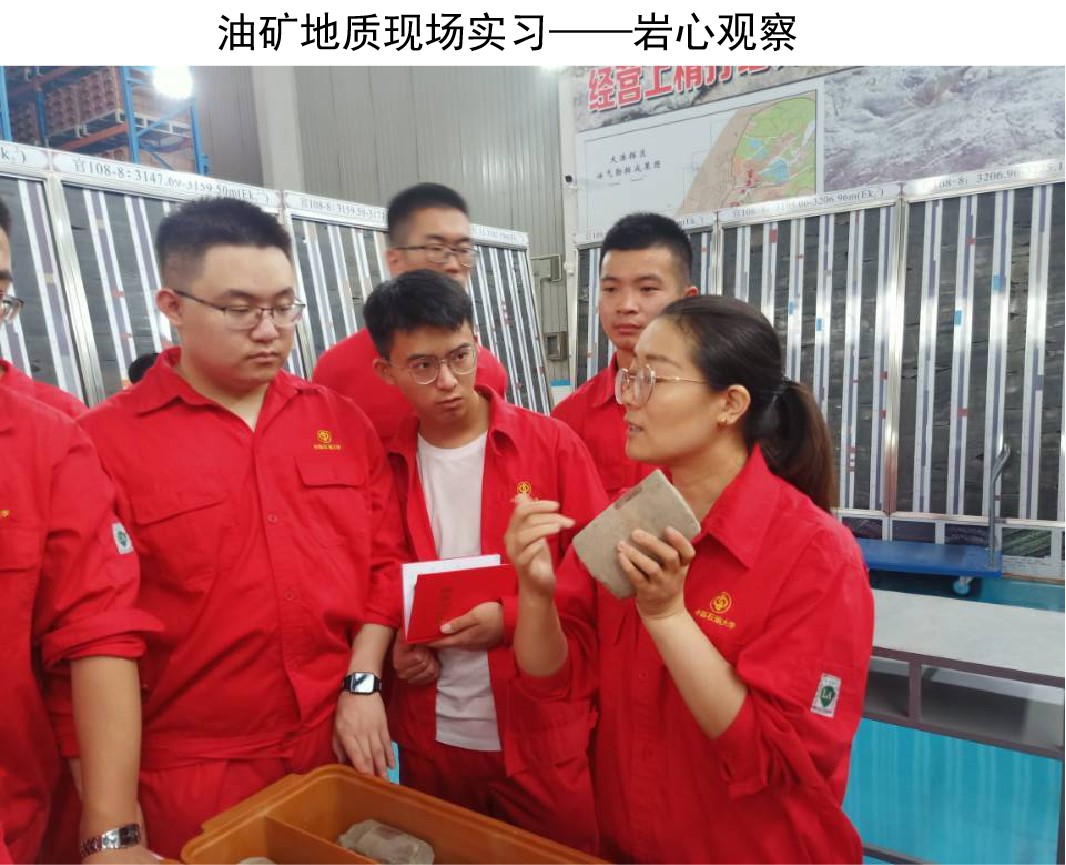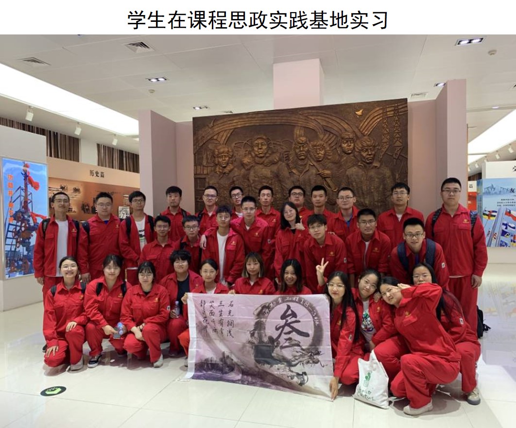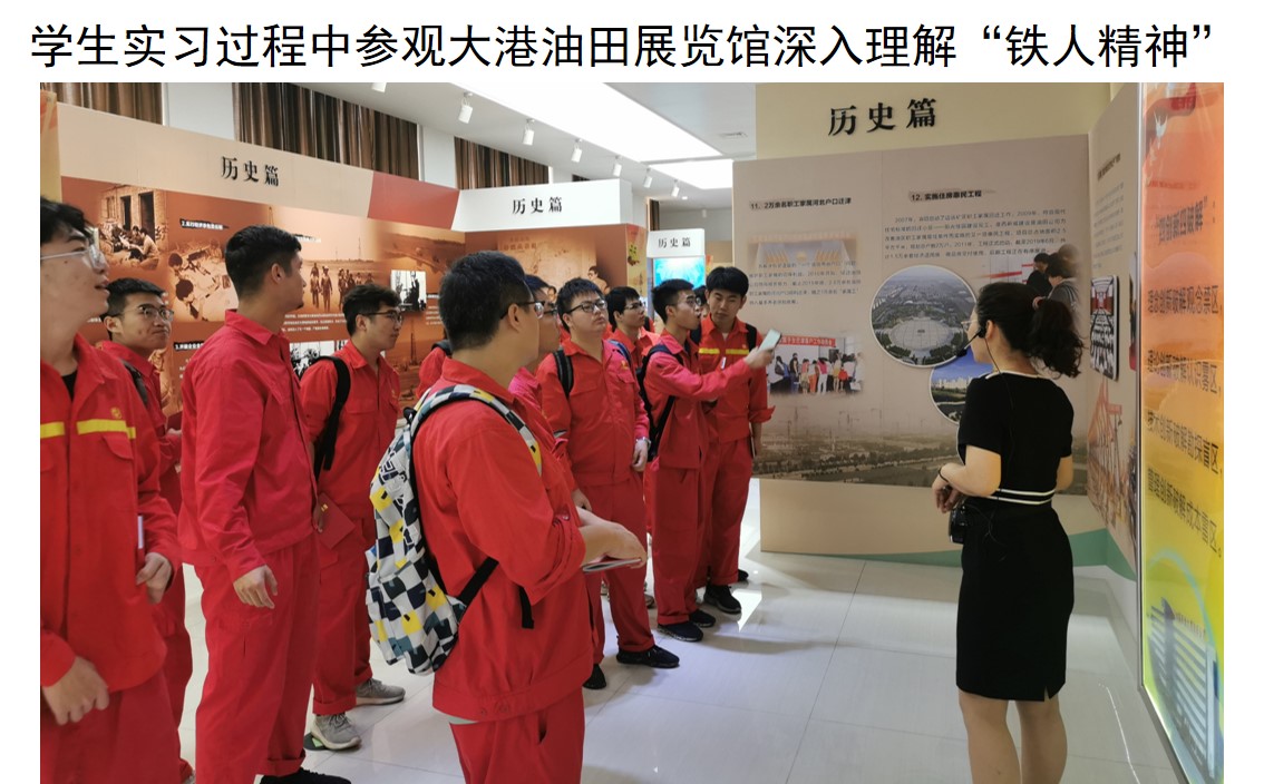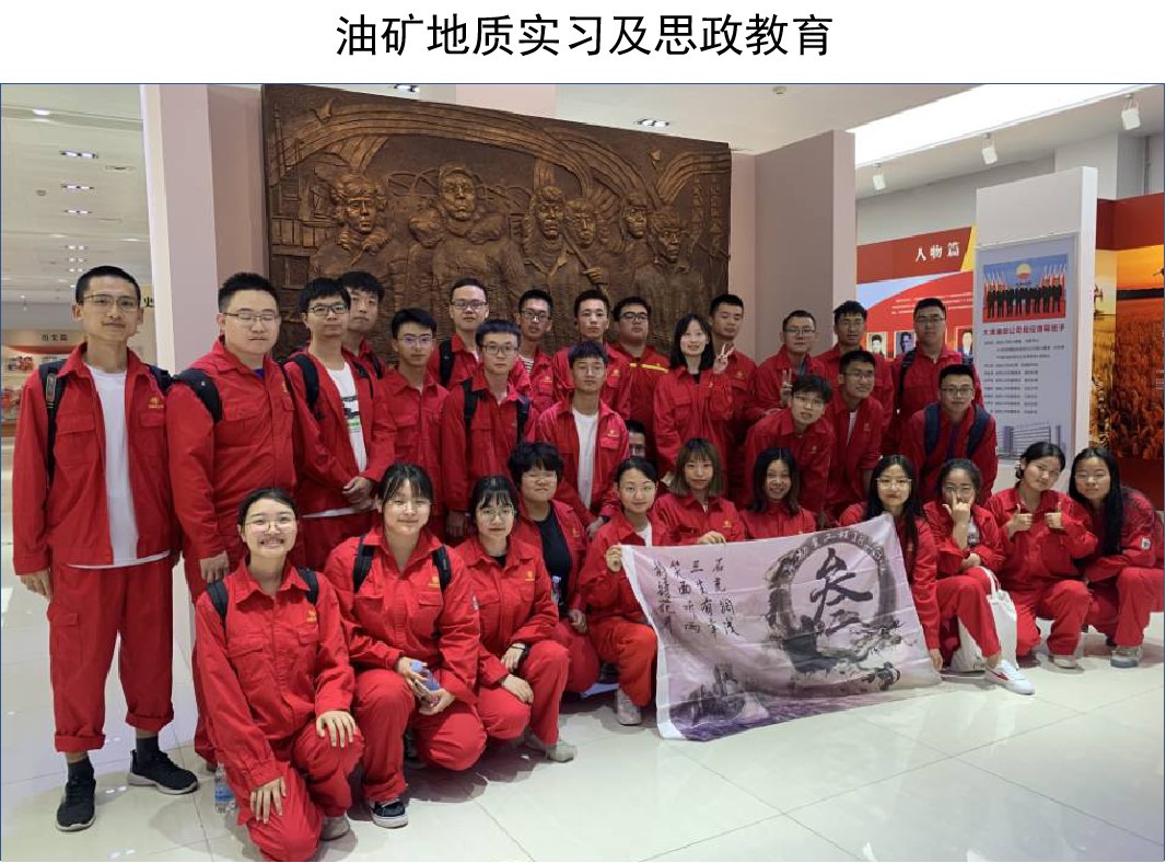 • 依托我校在大港油田建设的国家级工程实践教育中心,建成了“中国石油大学课程思政实践基地”。在《油矿地质现场实习》等实习实践教学中,实施油田劳模、专家和学校教师协同指导,将“爱国、创业、求实、奉献”的铁人精神教育、企业文化学习、社会责任培养等融入专业实践教学,培养学生“艰苦奋斗、服务国家”的家国情怀。