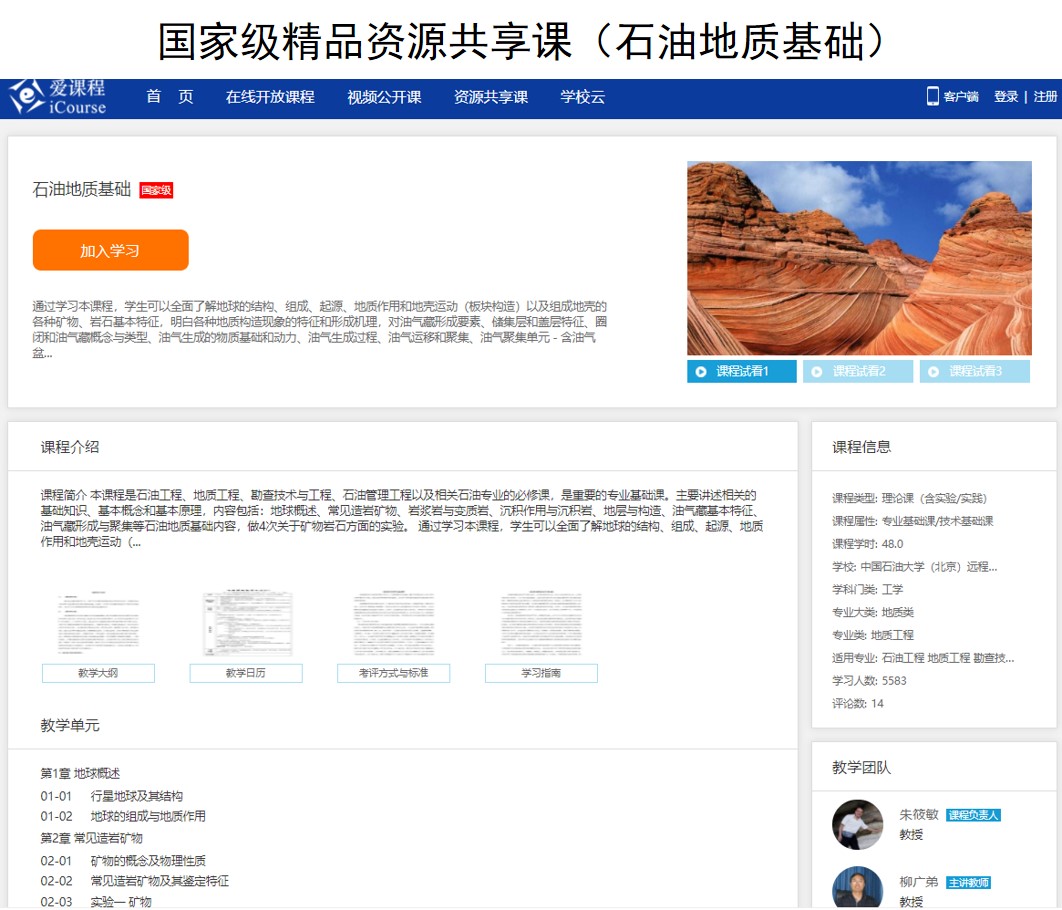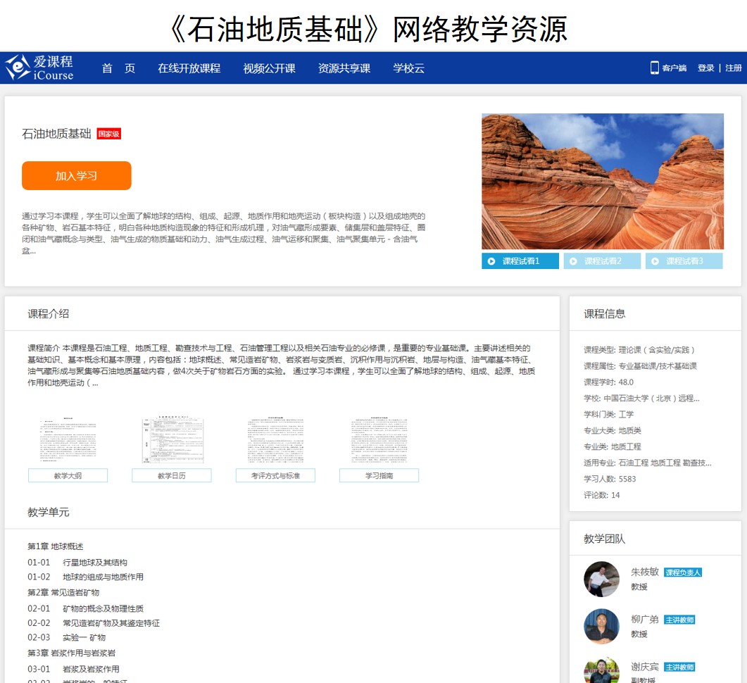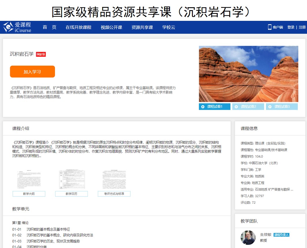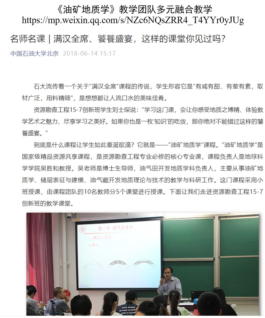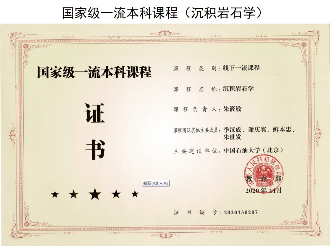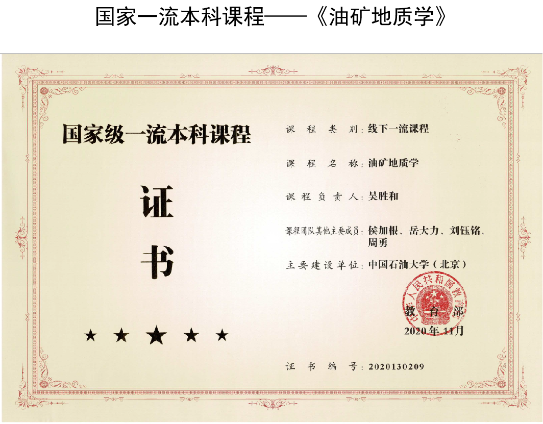 • 针对能源产业发展的新需求,将学科发展新理论及最新科研成果进教材、进课堂、进实验。将最新科研成果融入教材,出版了《沉积岩石学》等4部国家级规划教材;制作丰富的具有挑战性的实训资源库,建成了《油矿地质学》等2门国家级本科一流课程及4门国家级精品资源共享课程;基于最新科研成果持续增设创新性实验,建设了国家级实验教学示范中心。