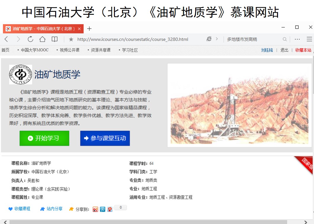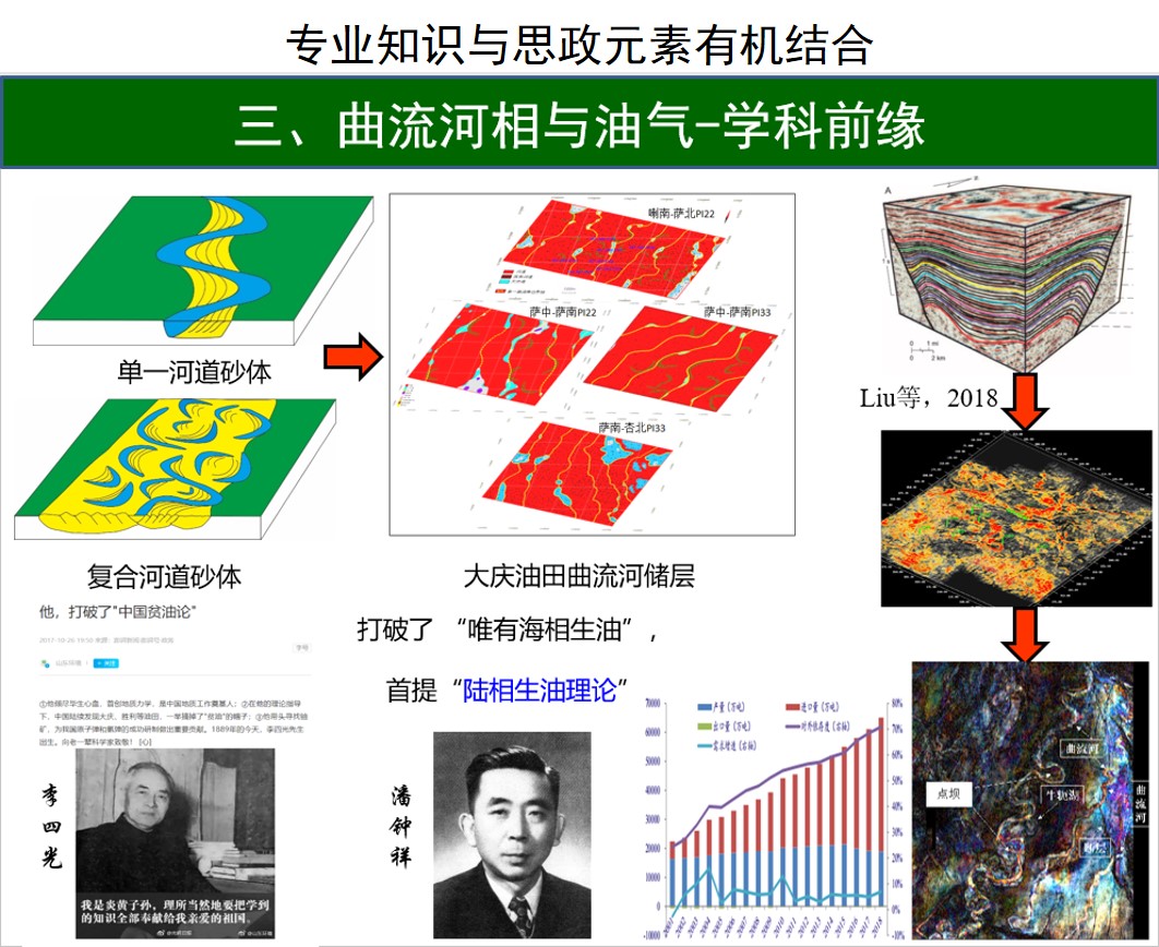 • 针对不同类型的专业课程,深挖课程思政元素,构建课程思政案例集,并有机融入专业课程教学,激发学生“科技报国、奉献石油”的爱国精神,如在“油矿地质学”课程的剩余油分布与挖潜教学中,通过“新时期铁人”王启民“稳油控水”提高原油采收率的事迹,增强学生科技报国的使命感和学习动力,达到润物无声的育人效果。