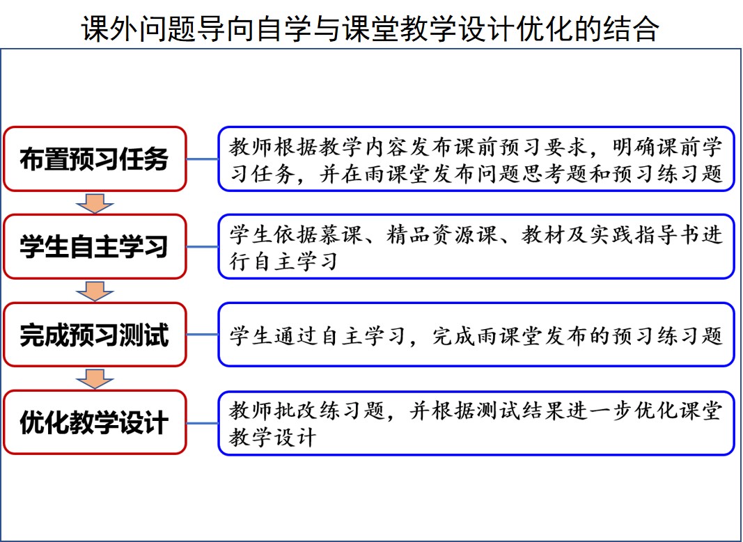 •        课前在雨课堂发布问题思考题和预习练习题,引导学生依据慕课、教材及实践指导书进行自主学习并完成预习测试,教师根据测试结果进一步优化课堂教学设计。这不仅可有效锻炼学生自主学习能力,还有助于教师有的放矢地进行课堂教学以提高教学效果。