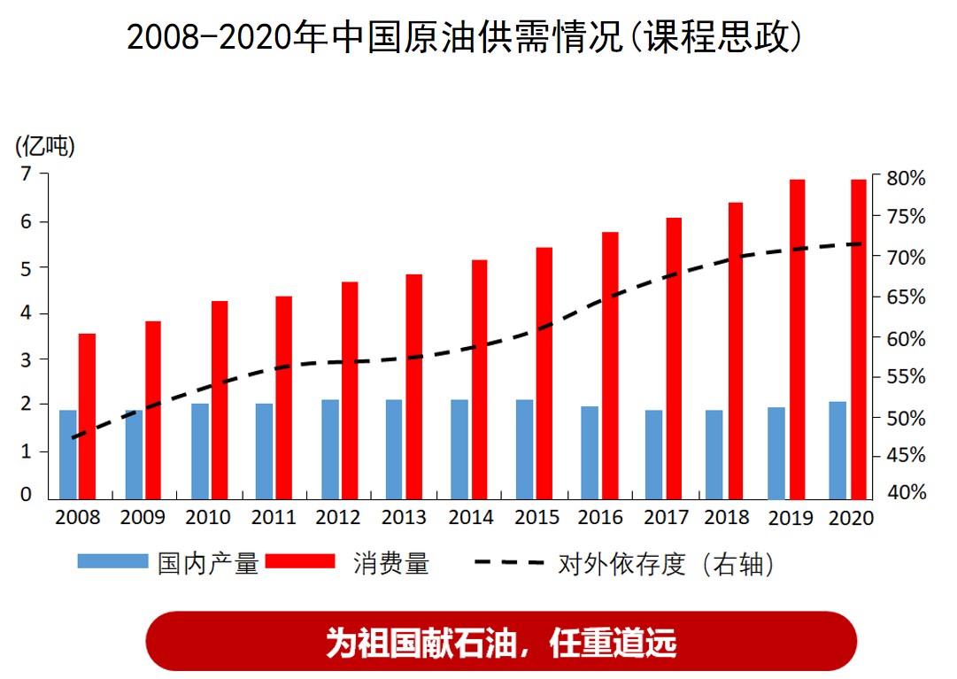 (2)传统专业知识结构滞后。传统课程体系及知识结构滞后,难以满足新工科发展的新态势和能源产业发展对新理论和新技术的需求。近年来,我国石油对外依存度已超过70%,油气能源战略安全形势严峻,非常规(如页岩油气)、深层、深水油气资源已成为我国油气能源重要的接替领域,相关的新理论和新技术(包括大数据及人工智能等新技术)不断涌现,亟需对专业课程体系和课程内容进行升级改造,为学生服务国家重大需求奠定必要的知识基础。