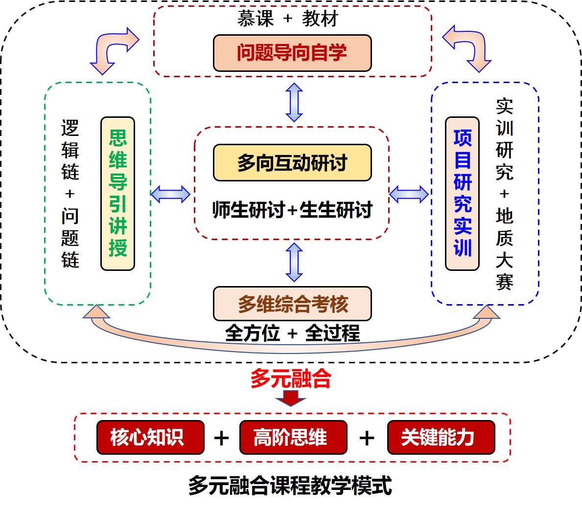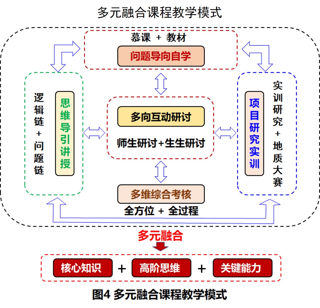 •         针对传统的以知识传授为主的讲座式“讲-听”方式对于学生高阶思维和关键能力培养不足的问题,构建了“问题导向自学-思维导引讲授-项目研究实训-多向互动研讨-多维综合考核”多元融合的课程教学模式,实现课程教学由知识传授向知识、思维、能力全方位培养的转变。
