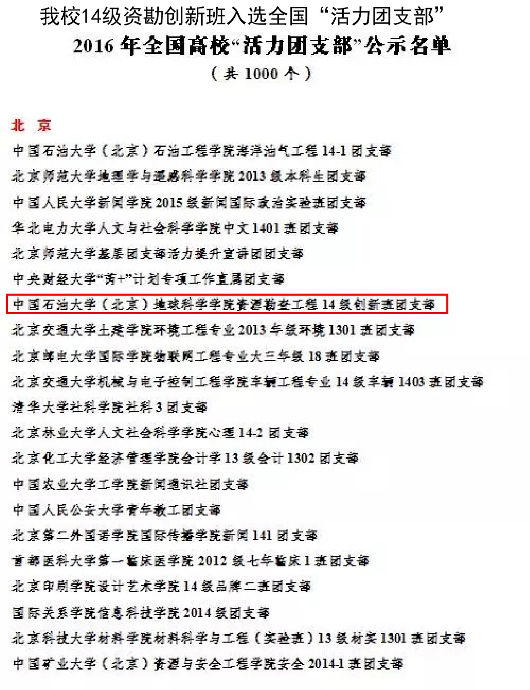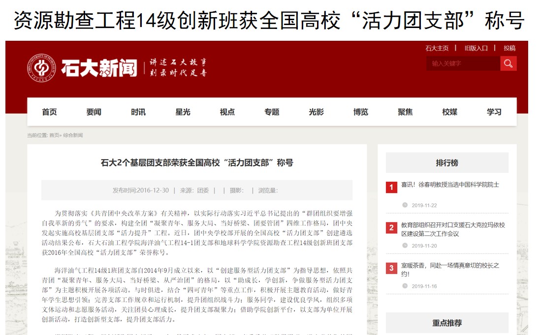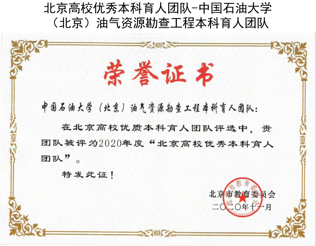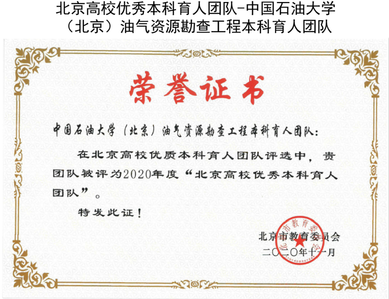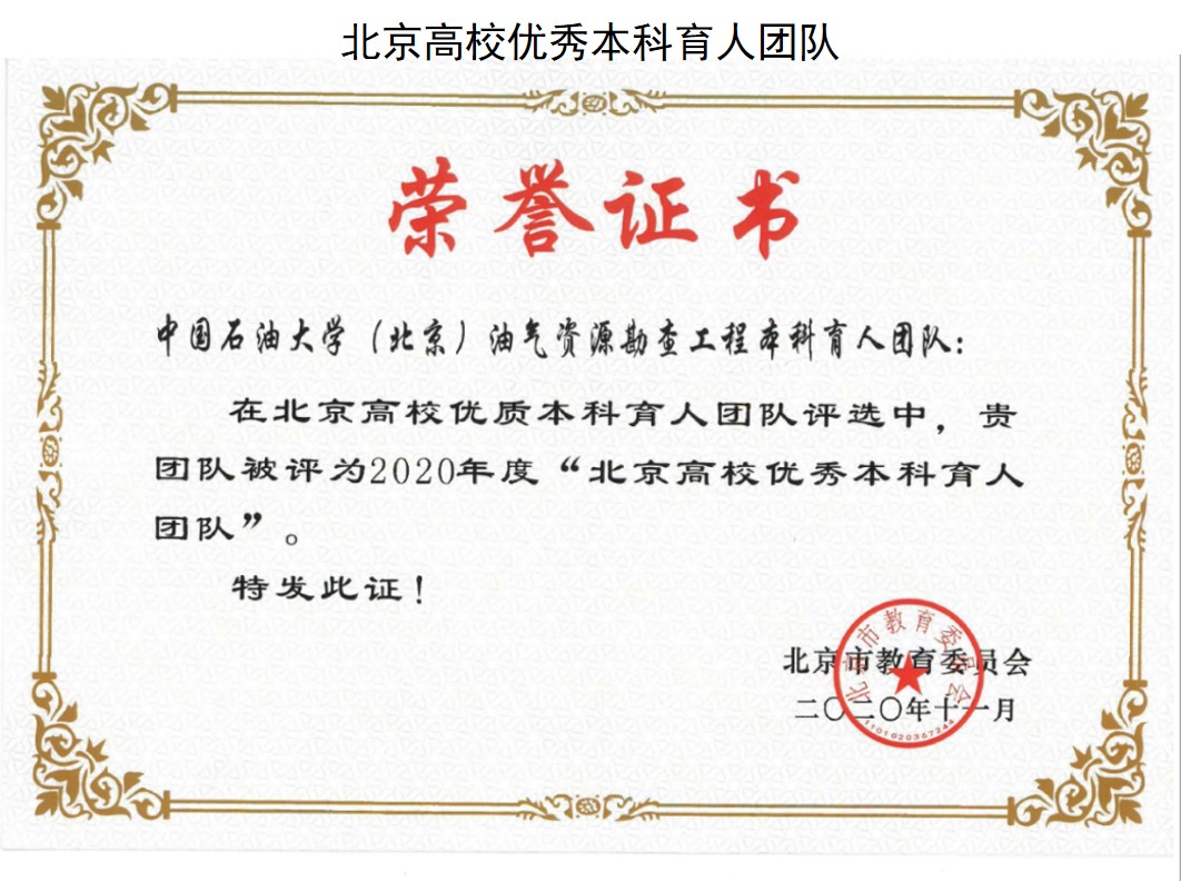 自1953年建校以来,本专业为国家培养了一大批学术精英和油田企业高级管理人才。近5年来,就业的毕业生有三分之一选择到西部石油石化企业工作。2020年7月,习近平总书记给我校克拉玛依校区毕业生回信,充分肯定了他们的人生选择本专业在校生1个团支部获全国高校“活力团支部”称号,3个团支部获北京市五四红旗团支部荣誉称号,6个班级获北京市先进班集体荣誉称号;6名本科生获全国地质类学生最高奖—李四光优秀学生奖,10名学生获美国石油地质学家学会(AAPG)助研金,150余人次获得创新创业和学科竞赛国家级奖项。