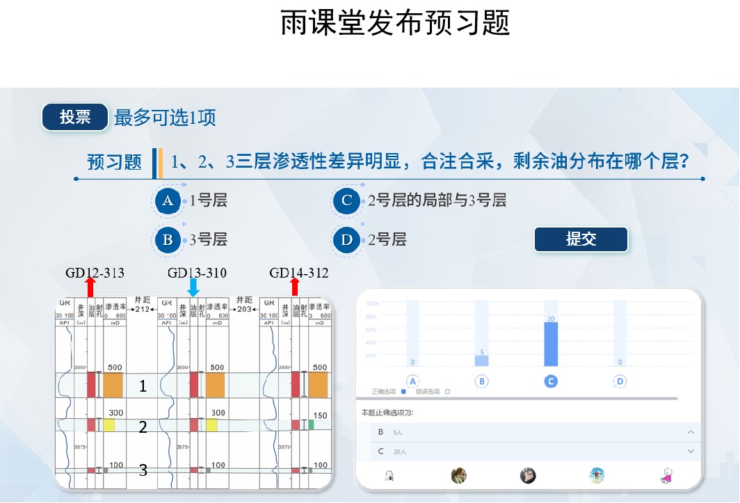 结合理论教学,实施项目研究实训。通过创新性实践环节,指导学生进行研究式学习。学生在教师的指导下,应用油田实际资料,针对油田生产的实际问题进行分析和研究并撰写研究报告,使学生在实践锻炼中建构知识并提升分析和解决复杂问题的高阶思维、综合能力和创新意识。