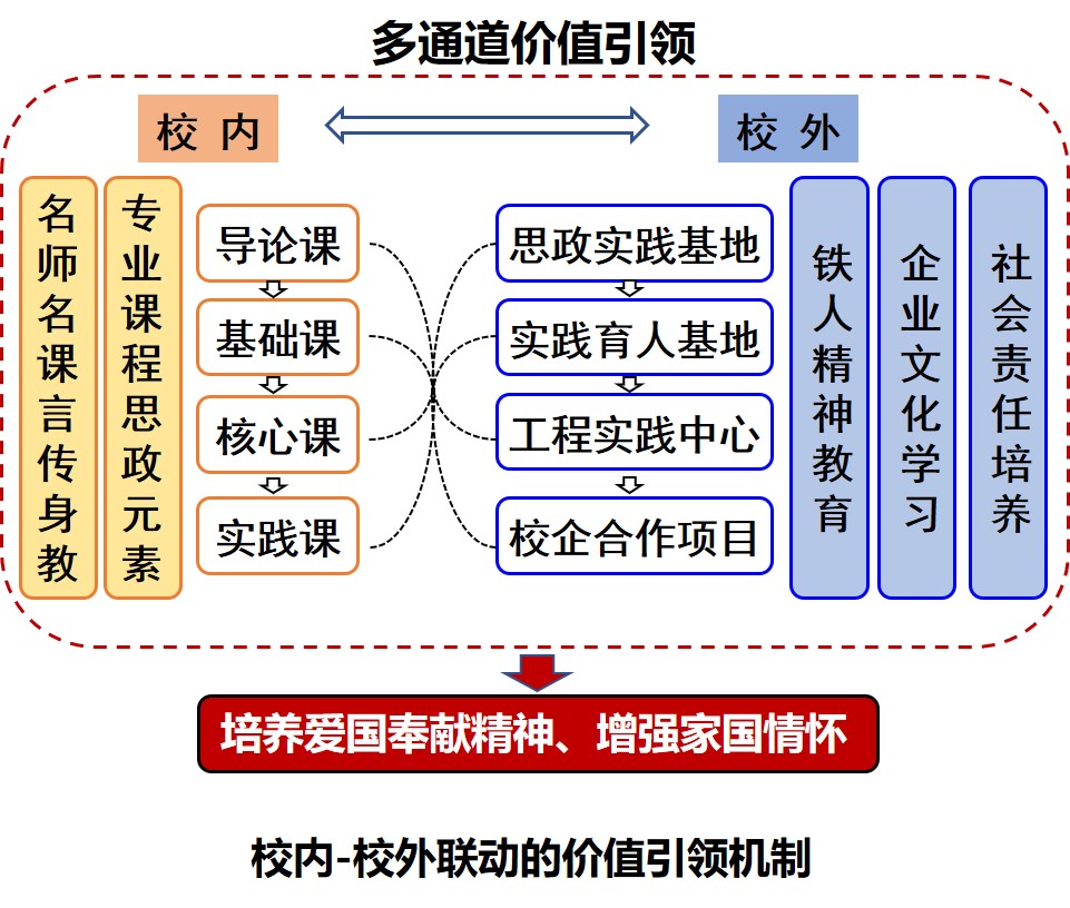 价值引领塑造学生“艰苦奋斗、服务国家”的家国情怀。创立了校内-校外联动的多通道价值引领机制,通过深挖专业课程思政元素、教学名师领衔主讲专业核心课程、与油田企业共建课程思政实践基地等措施,将铁人精神教育、科技报国情怀、社会责任培养等融入专业课程教学。