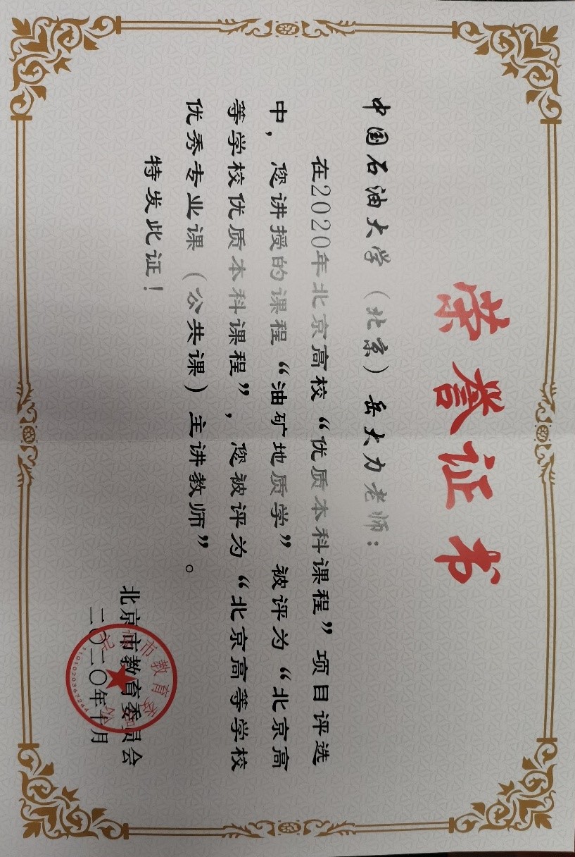 3.7 北京市高校优质本科课程(油矿地质学、沉积岩石学、石油地质学)