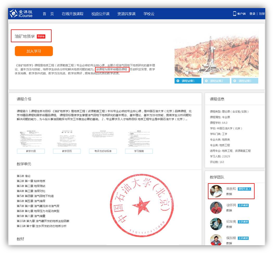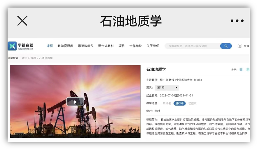 3.5 在线课程建设(油矿地质学、沉积岩石学、石油地质学、油气田勘探、石油地质基础)