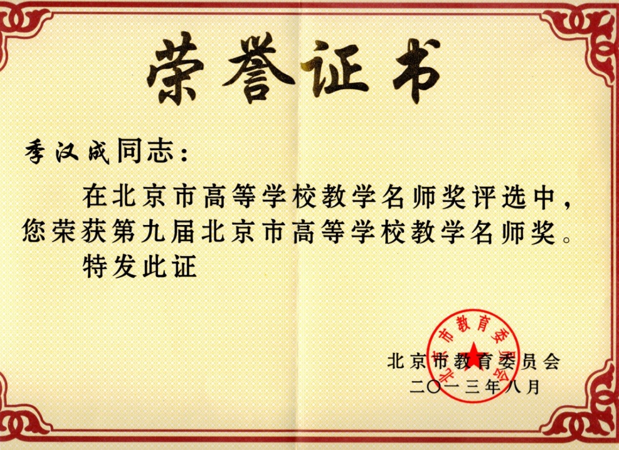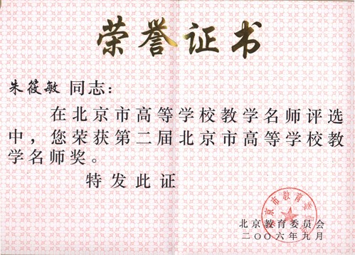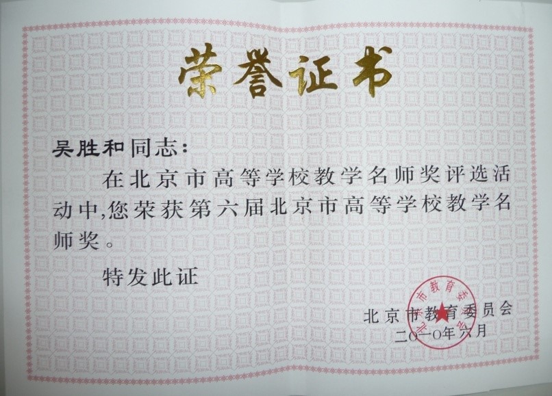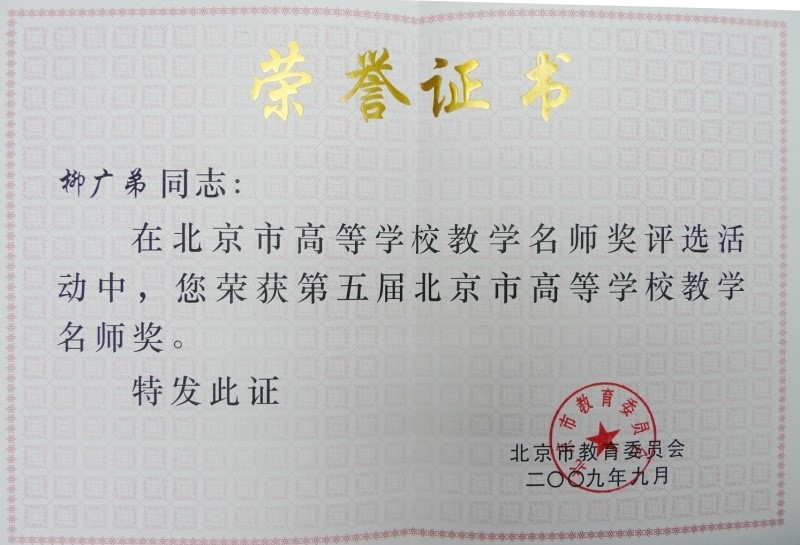 6.8 北京市高等学校教学名师奖证书(朱筱敏、柳广弟、吴胜和、季汉成、谢庆宾、王贵文、岳大力)