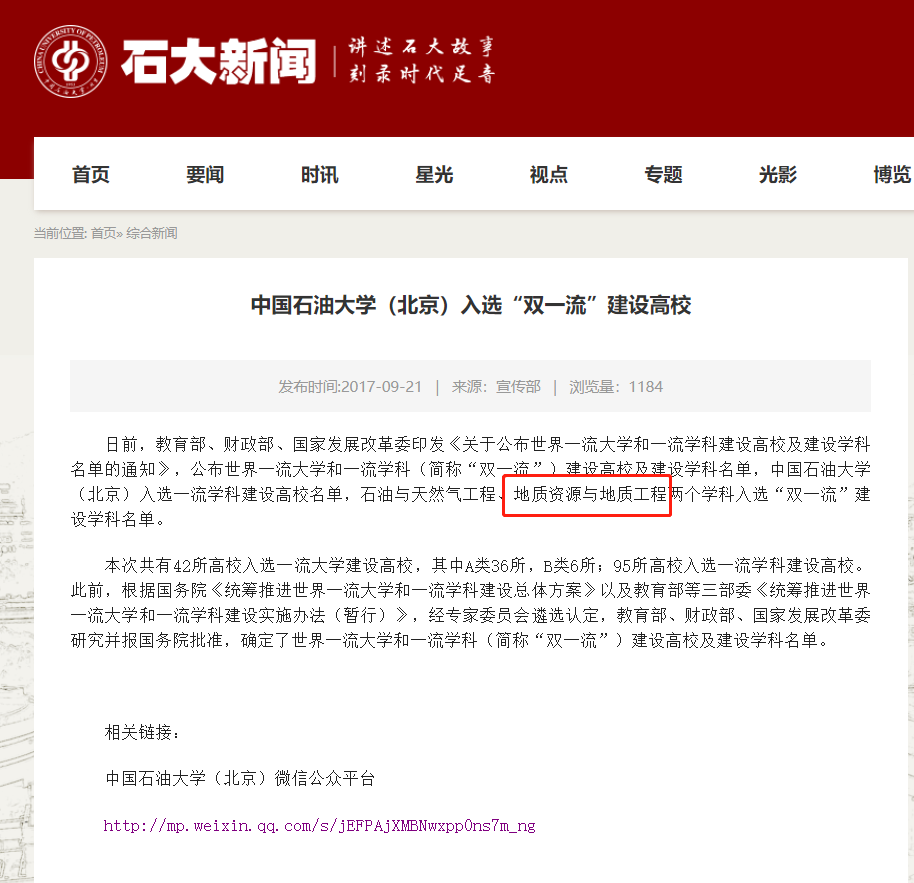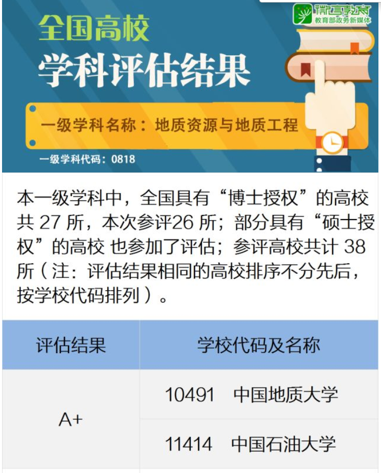 2.3 国家级一流学科建设点:地质资源与地质工程(A+)