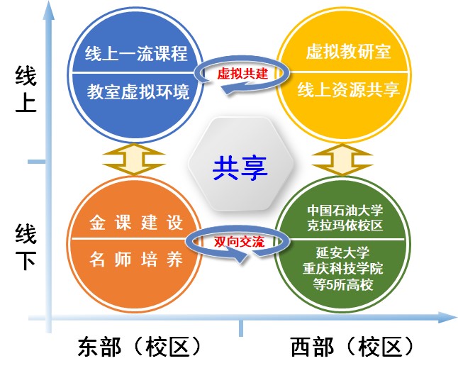 以工程教育专业认证为引领,坚持OBE产出理念,优化专业建设结构,打造“金课”引领的一流课程群,构建了线上线下即时共享的教学模式。基于线上教学平台、教研成果共享及推送的数字化平台,实现后疫情时代线下线上即时教学,共享优质教学资源。通过与中国石油大学(北京)克拉玛依校区、延安大学、重庆科技学院等西部高校石油工程专业成员建立虚拟教研室,构建北京-西部高校校际联合教学研究工作体系,实现创建跨维共享培养新模式。校本部与克拉玛依校区优势互补,本部优质教学资源与校区工程实践教学资源共享,形成了一支包括2名院士、7名北京市教学名师在内的老中青结合的教学队伍以及一系列教学成果。