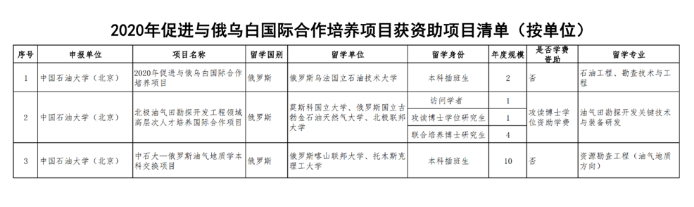 (2)国家留学基金委-促进与俄乌白国际合作培养项目